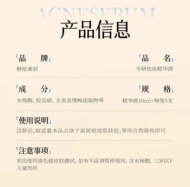 【三瓶装】韩伦美羽-专研祛痘精华液 10ml(蓝白电镀盖款)