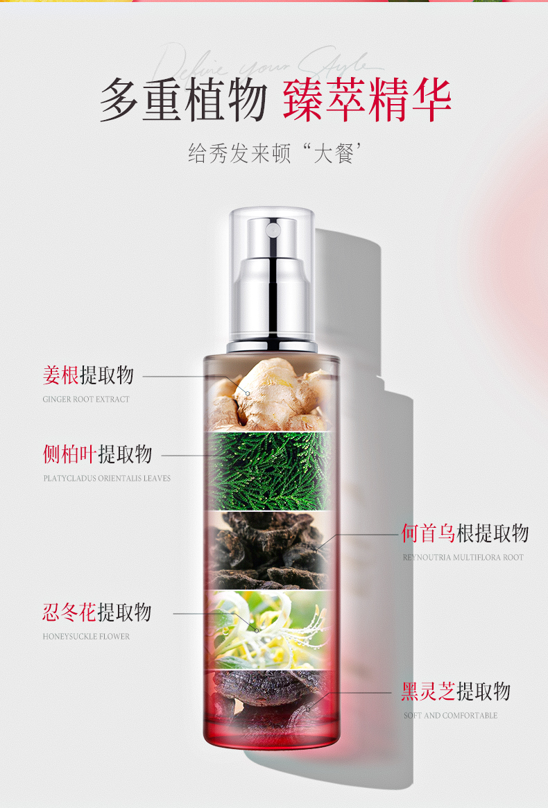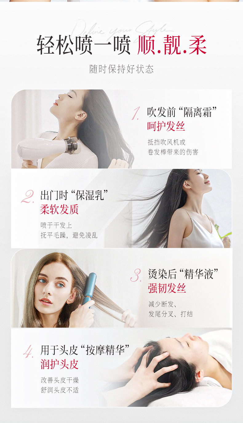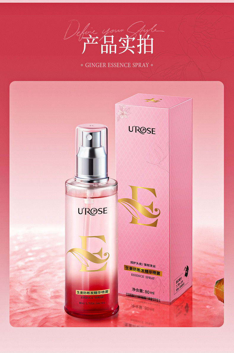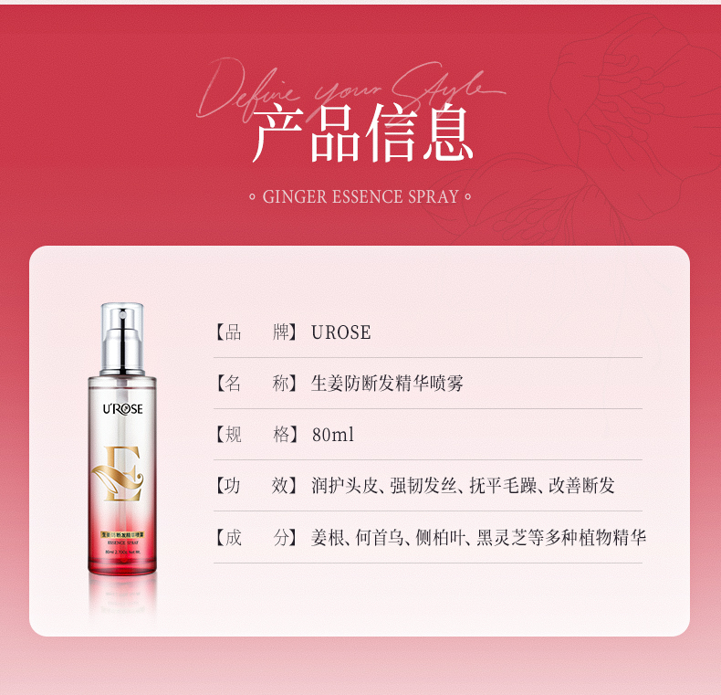 UROSE生姜防断发精华喷雾头皮护理修护毛躁分叉护发喷雾80ml*2瓶