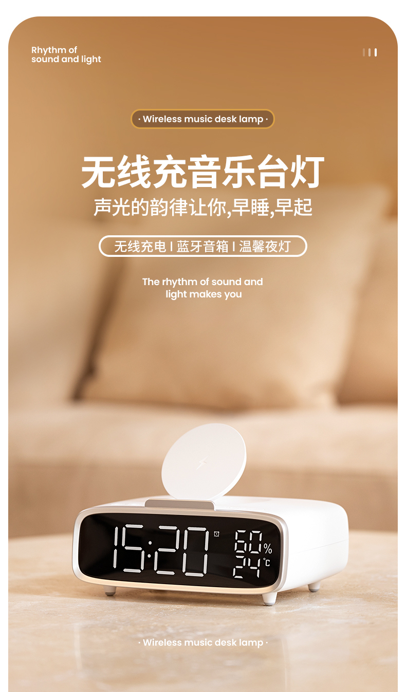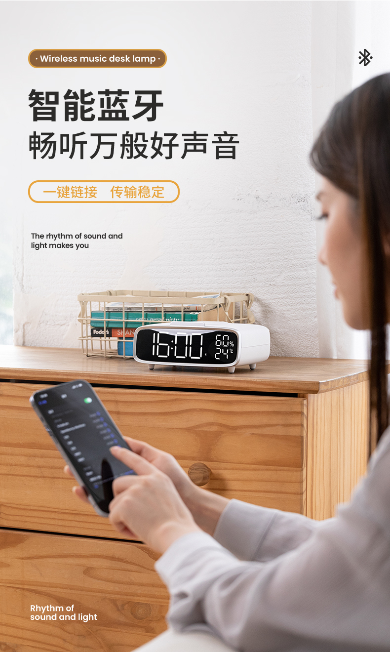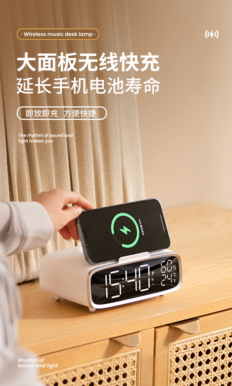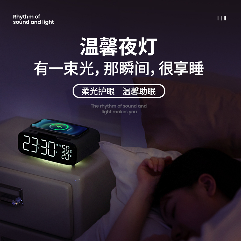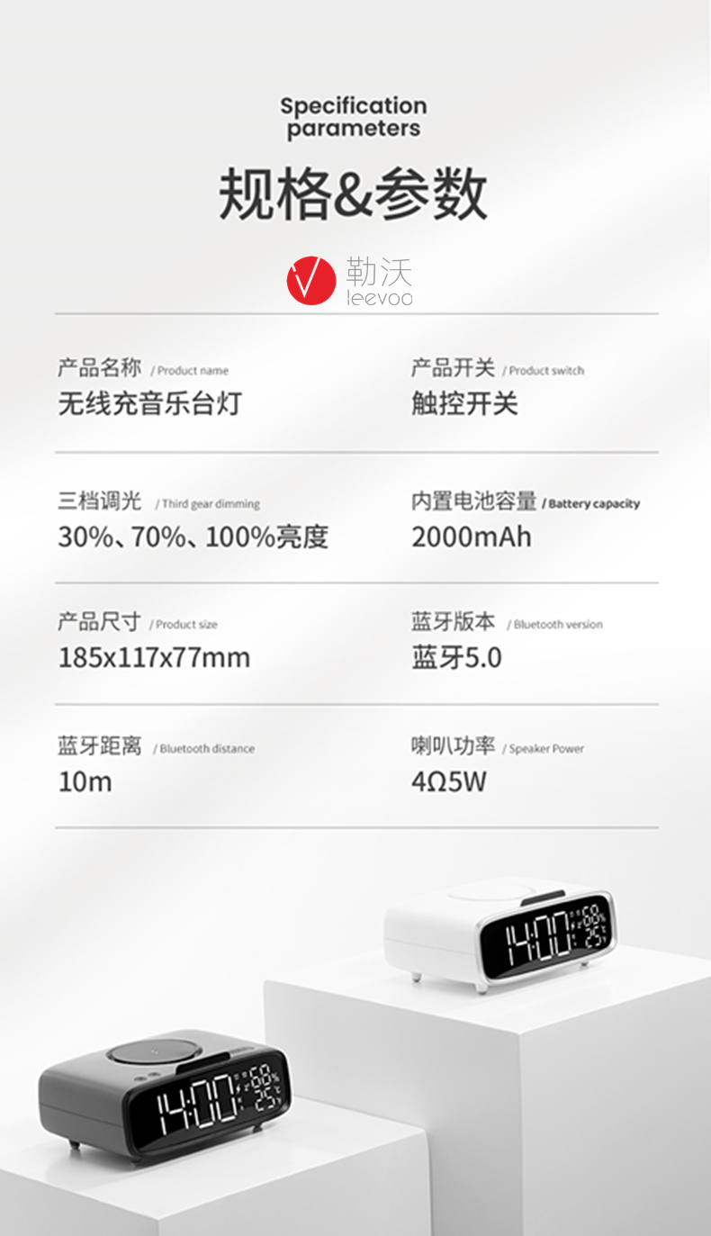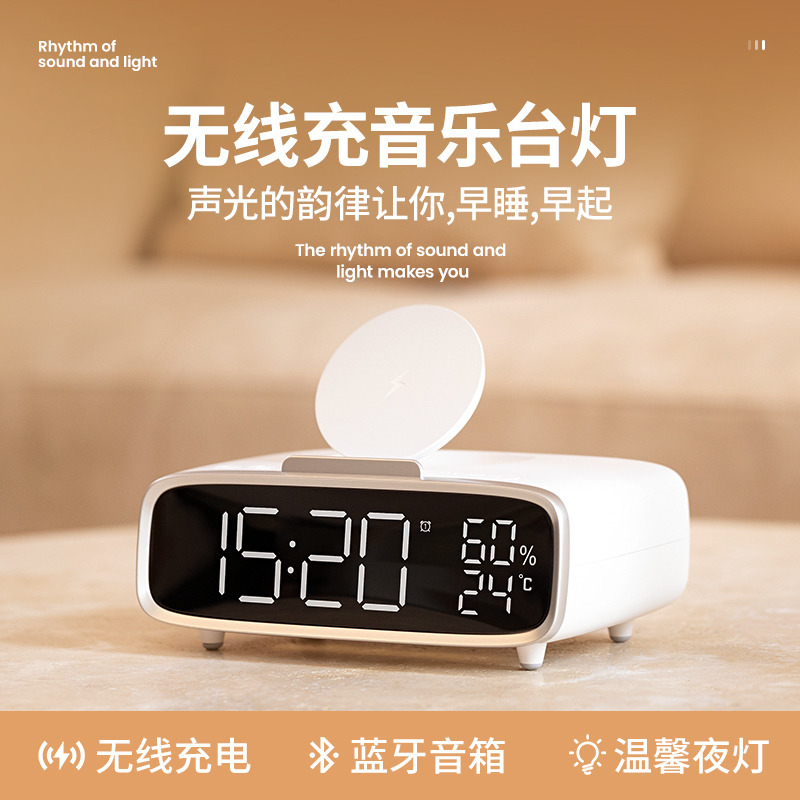勒沃15W智能蓝牙多功能无线快充可视化音箱小夜灯LV-W601