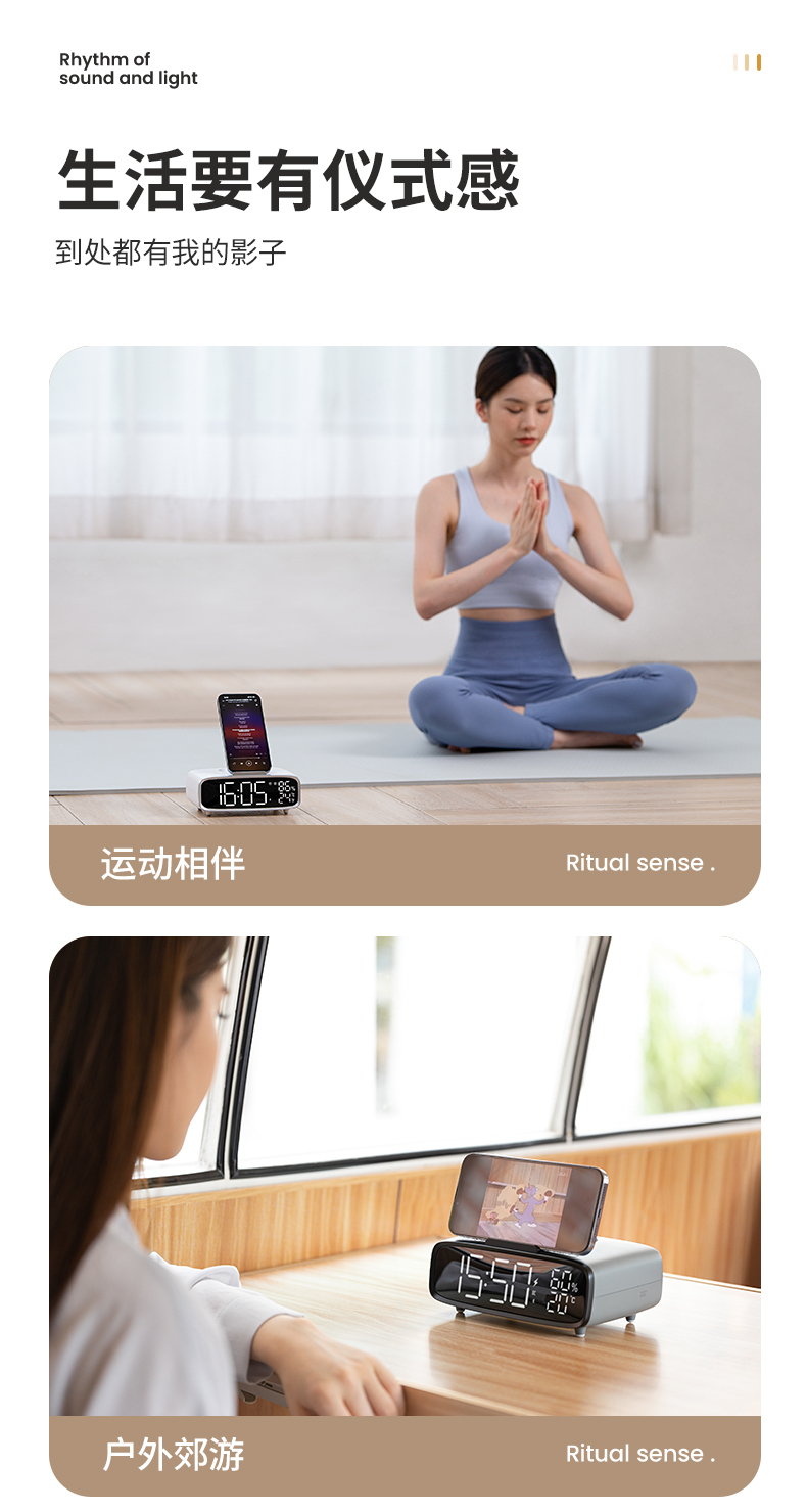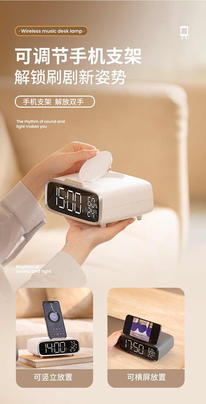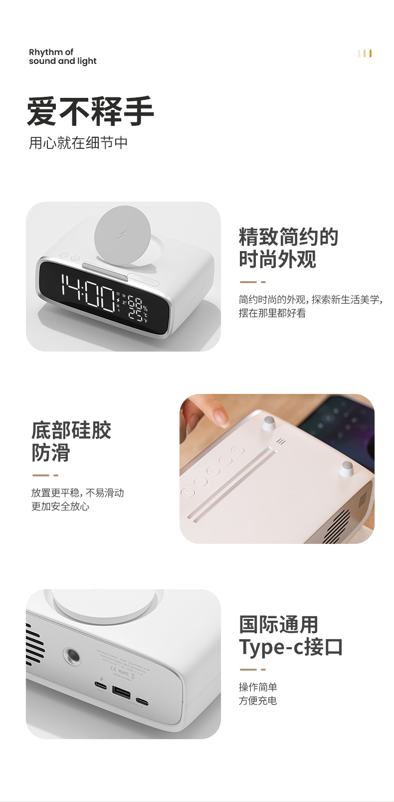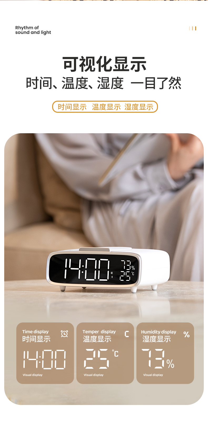 勒沃15W智能蓝牙多功能无线快充可视化音箱小夜灯LV-W601