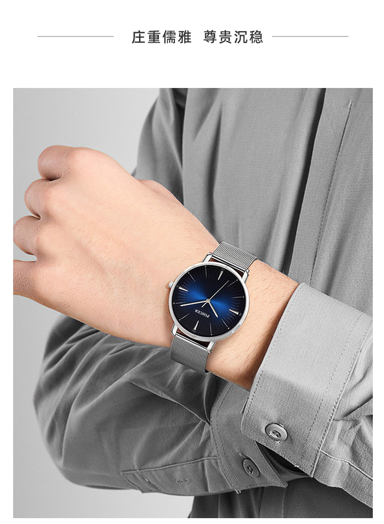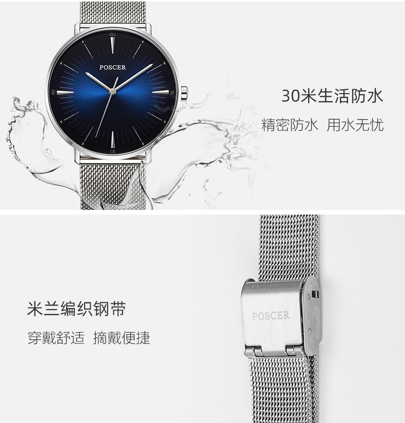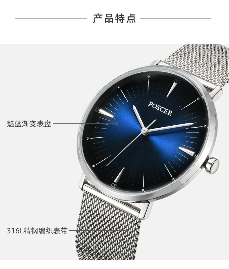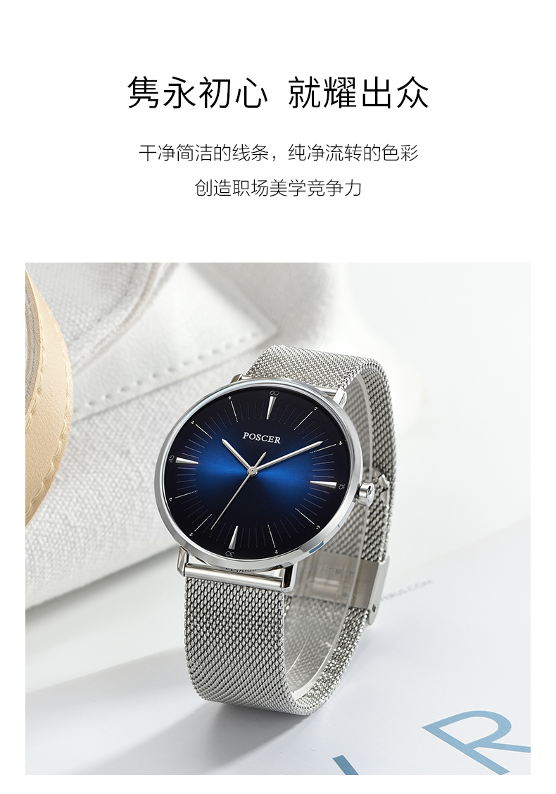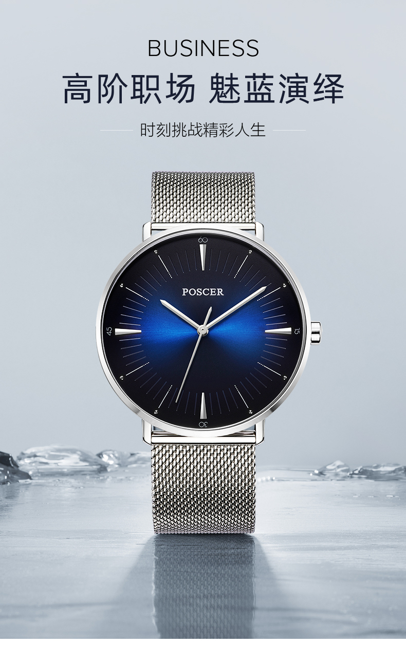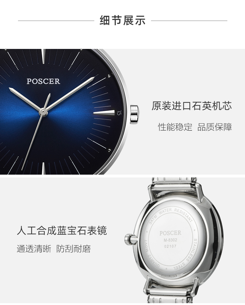 宝时捷男士时尚纤薄大表盘石英男表8302M蓝