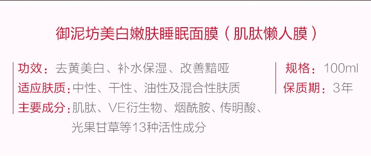 御泥坊美白嫩肤睡眠面膜100g 【到期日期:2024/3/1】 补水保湿去黄提亮肤色淡斑涂抹式