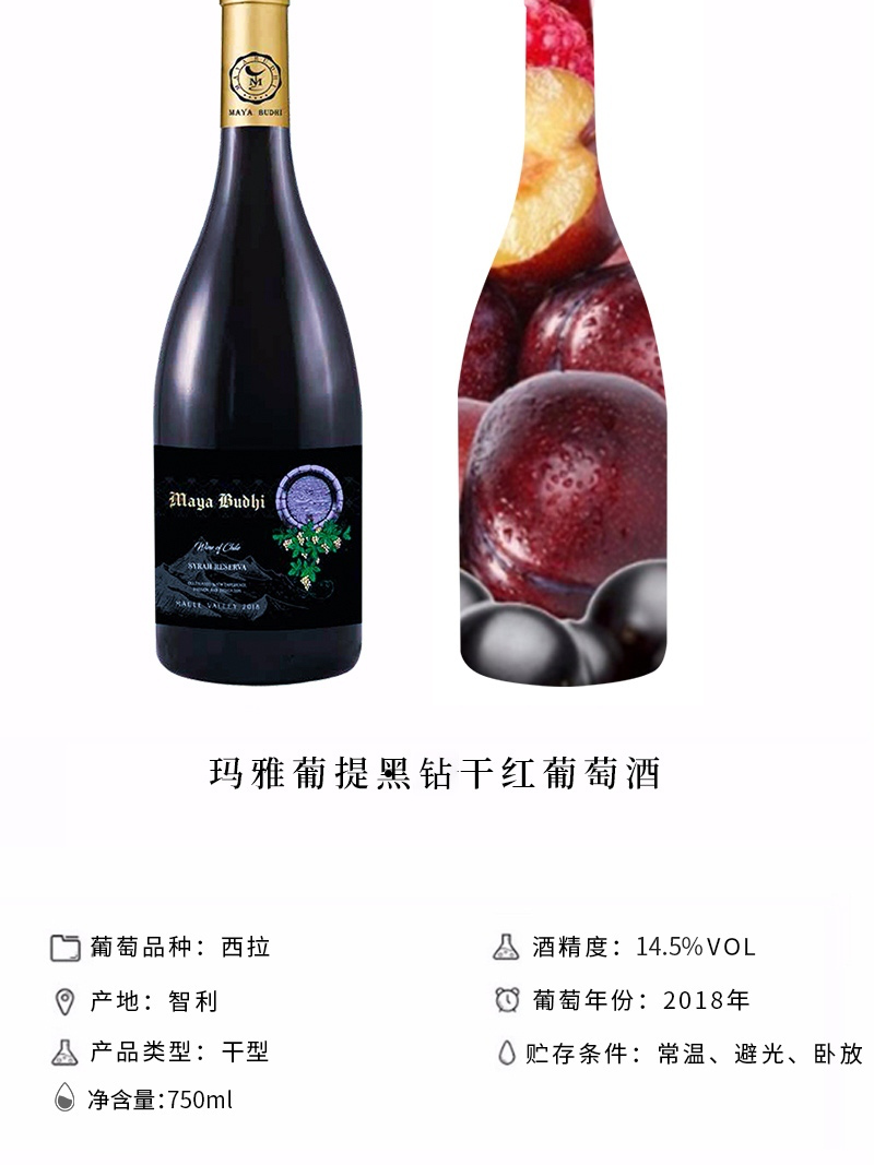 玛雅葡提黑钻干红葡萄酒14度750ml * 6瓶
