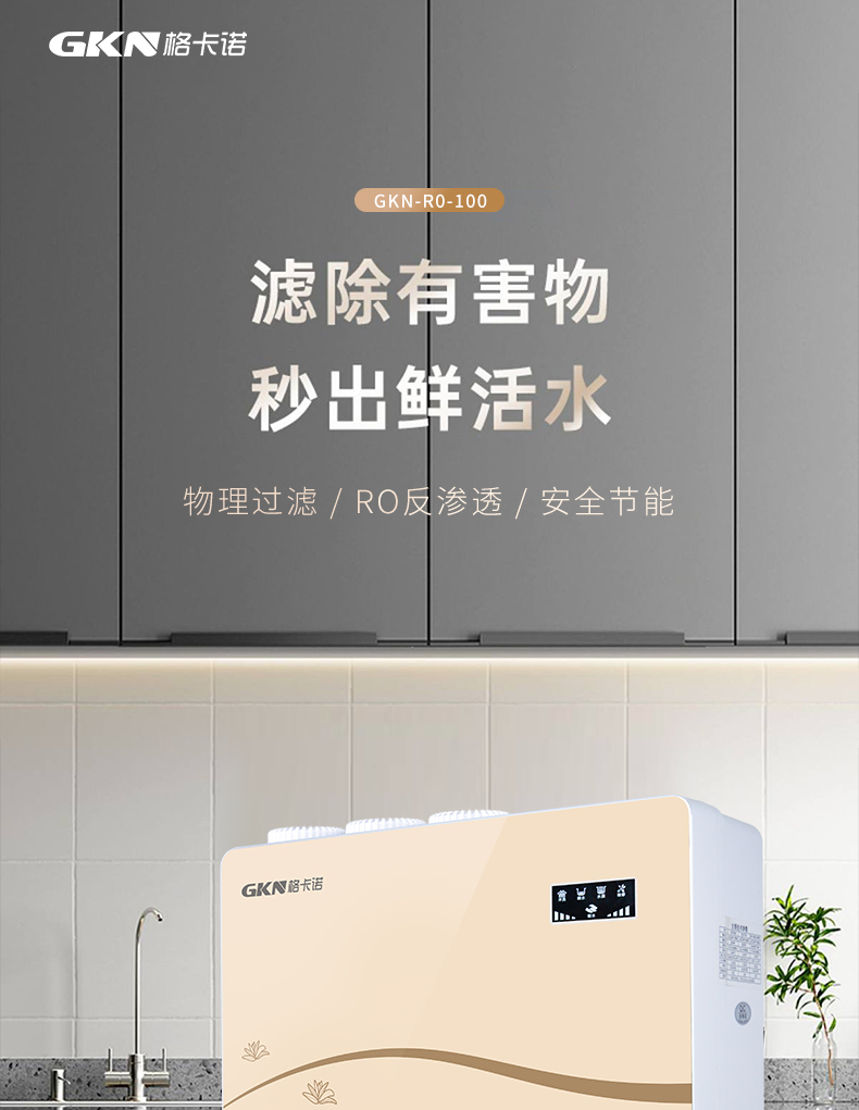 格卡诺新款苹果三代金韵纯水机反渗透五级净水机GKN-RO-100