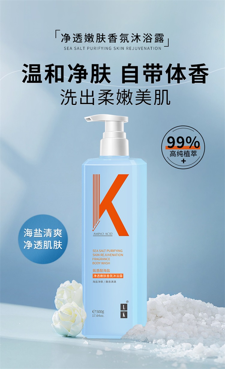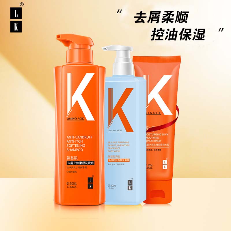 LK 洗发水海盐柔顺去屑3件套(氨基酸去屑止痒柔顺洗发水500g+氨基酸海盐净透嫩肤香氛沐浴露500g+生姜水润丝滑柔顺润发乳260g)