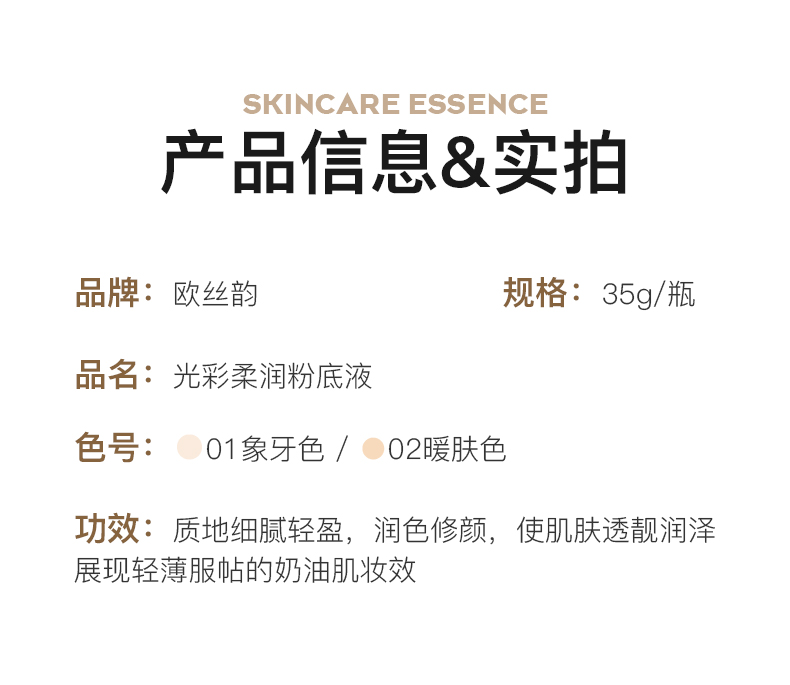 【两瓶装】欧丝韵-光彩柔润粉底液(01#象牙色+02#暖肤色)35g/支【新疆西藏内蒙不发货】