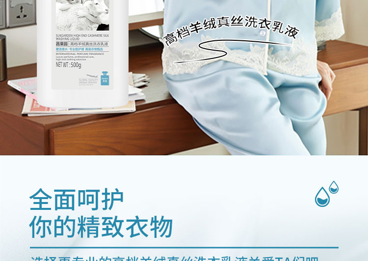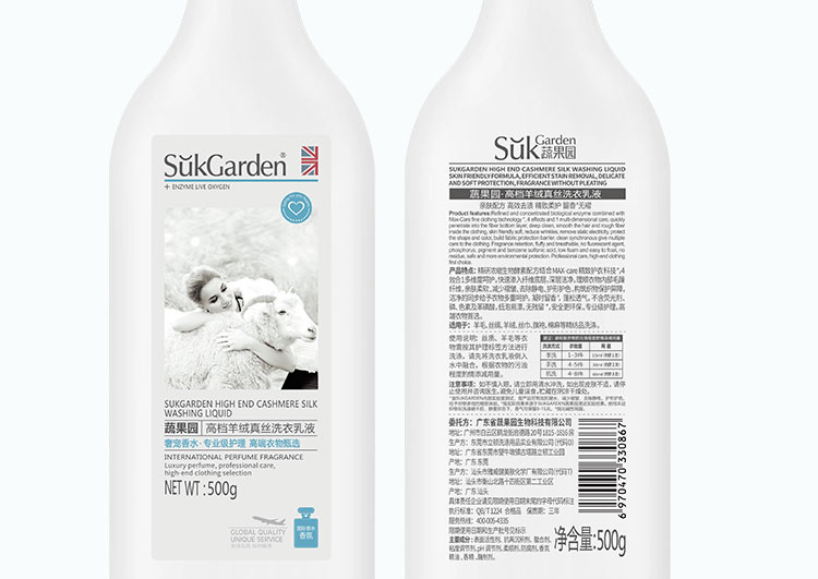 【3瓶】SukGarden蔬果园高档羊绒真丝洗衣乳液 500g*3瓶