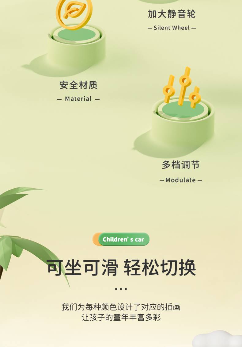 七贝贝儿童四轮平衡车学步车12-03LI学步神器儿童无脚踏单车