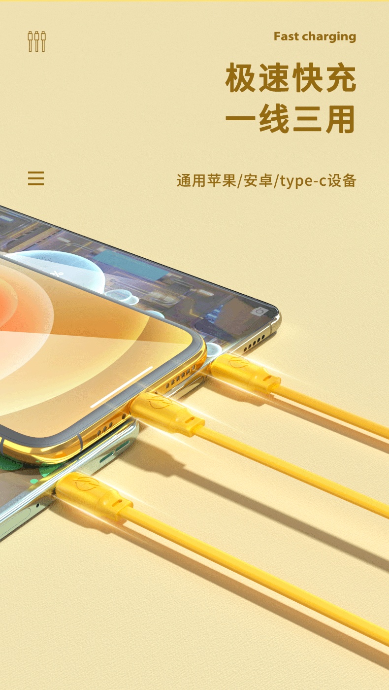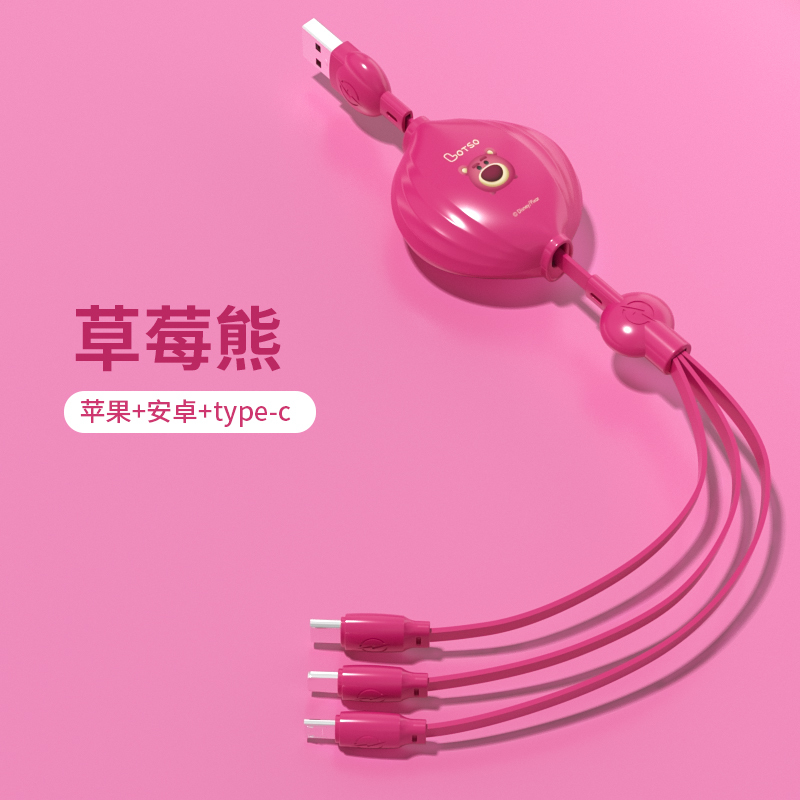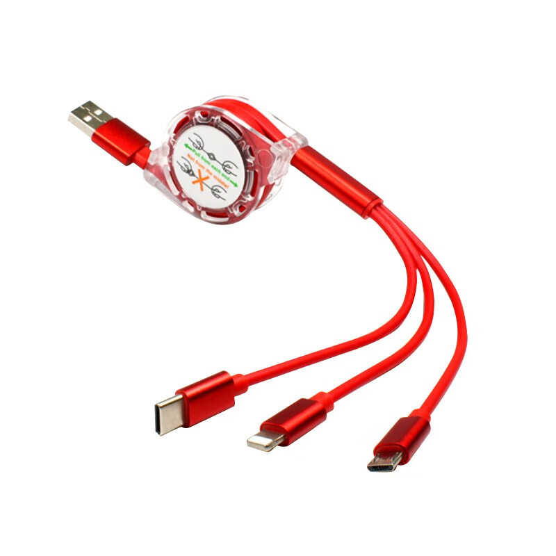 颐电钱兔似锦伸缩数据线一拖三充电线AD-3434红色
