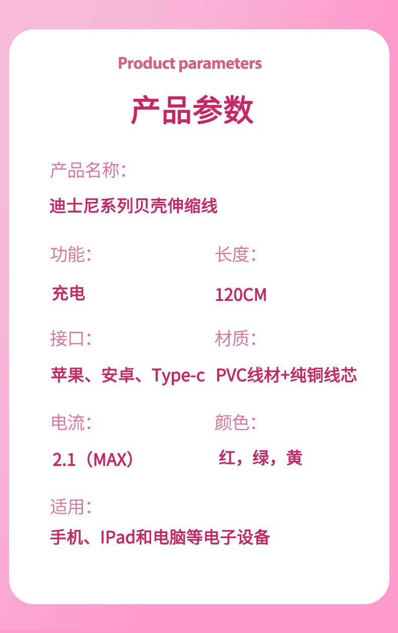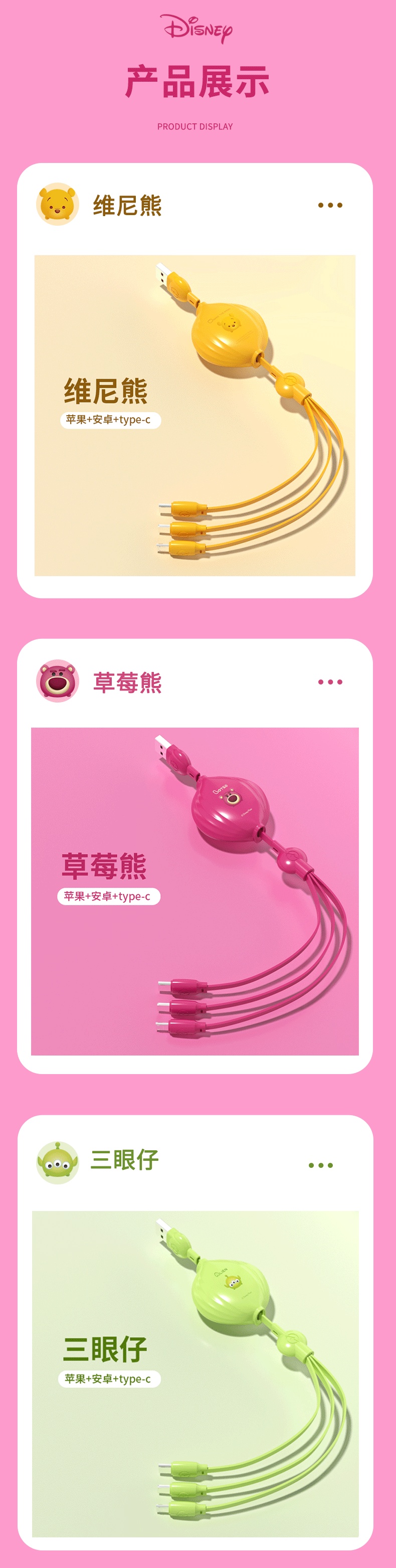 迪士尼Disney伸缩一拖三快充线18W SJ720