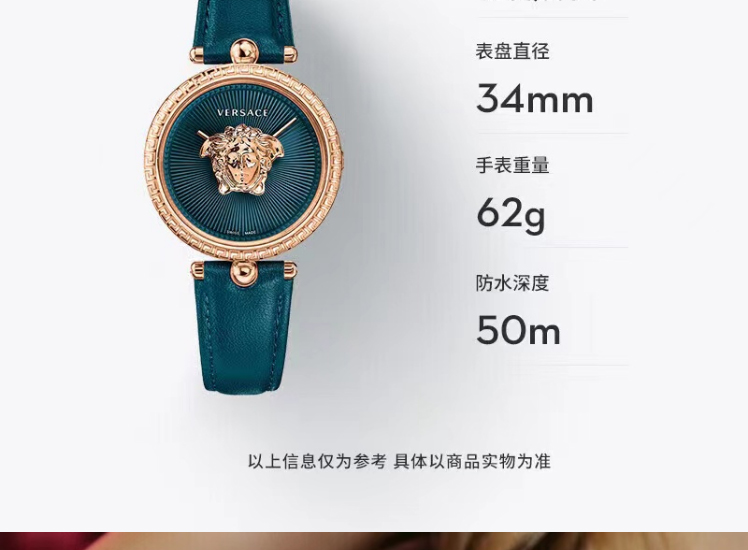 【范思哲(VERSACE)】普区包邮 - 美杜莎石英女表/小绿表石英女表 独特风范 设计出众 华丽精美 母亲节情人节礼物