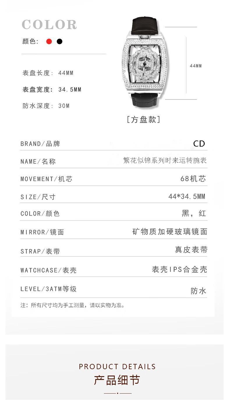 普区包邮-法国迪奥公司 CD【繁花似锦系列腕表】时来运转方形石英手表