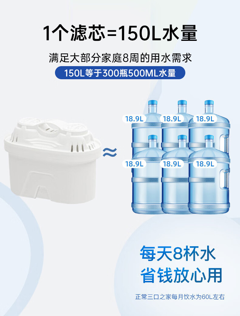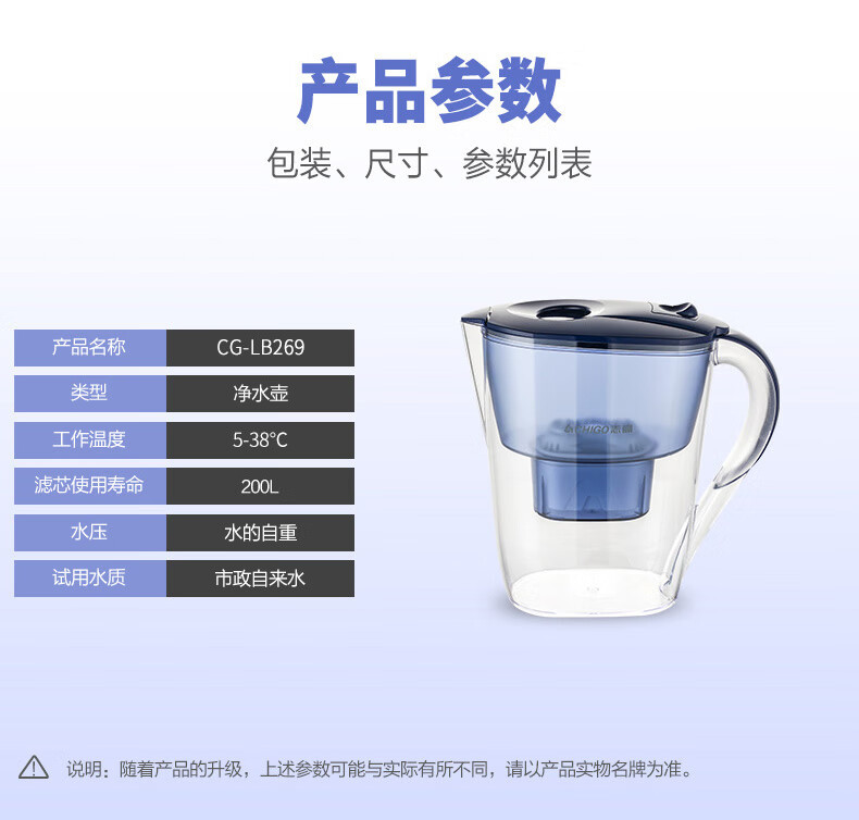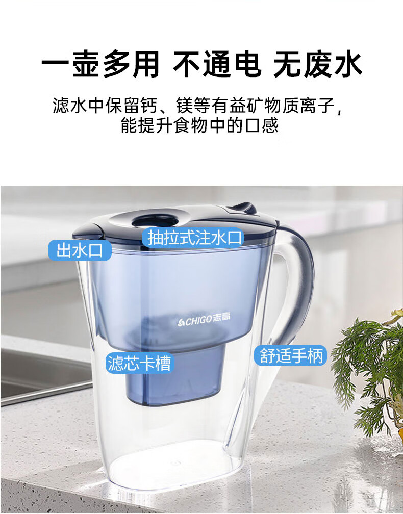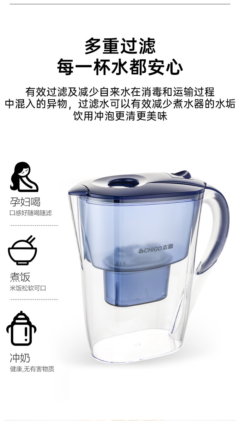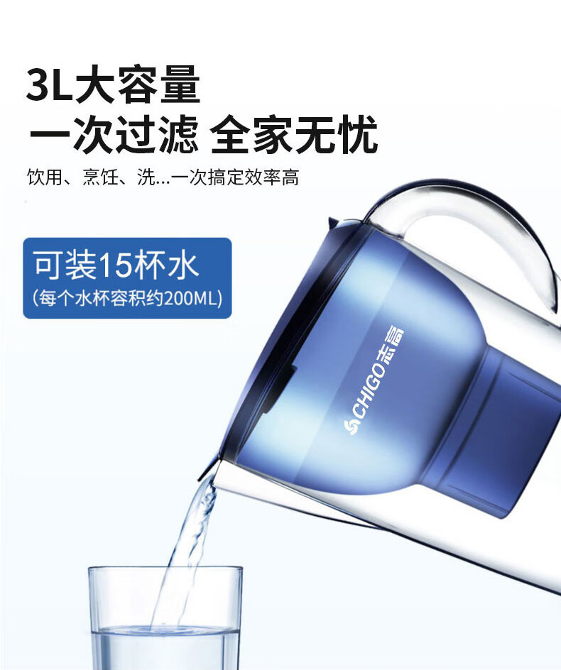 通用志高净水壶家用过滤器净水器厨房自来水滤水壶CG-LB269(1壶1芯)
