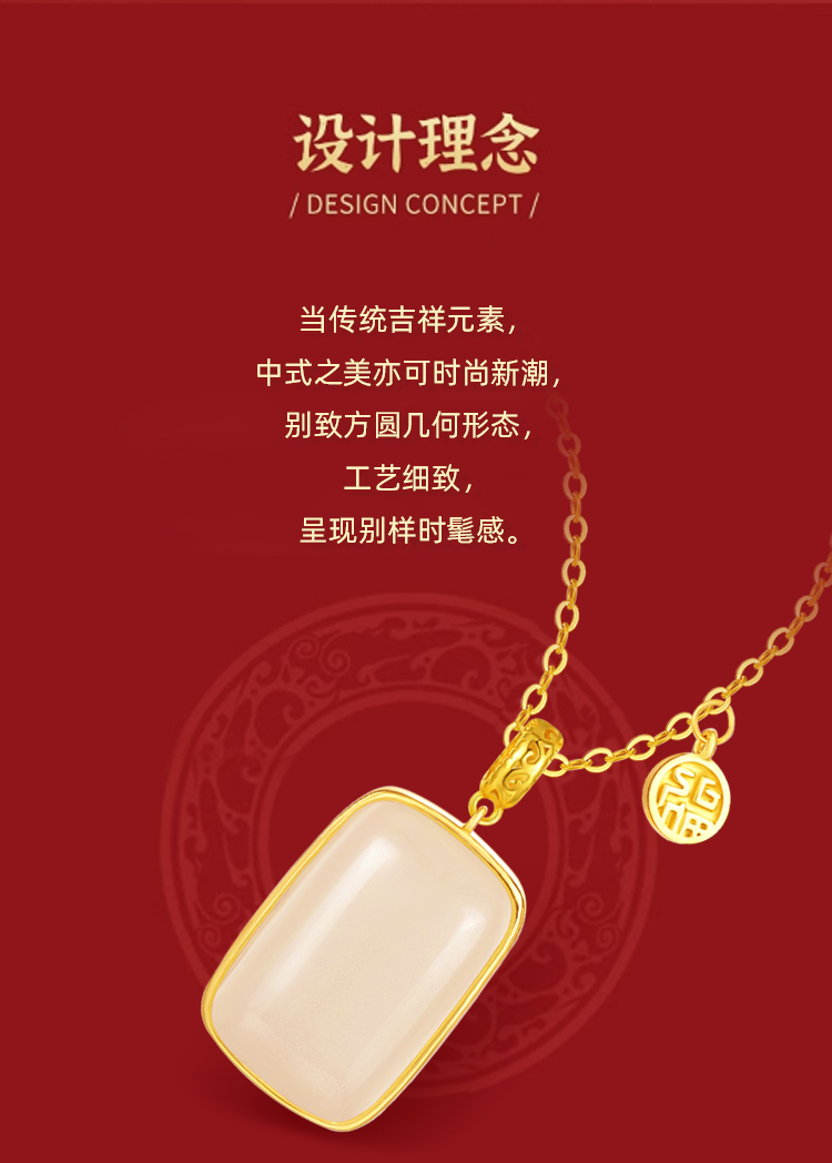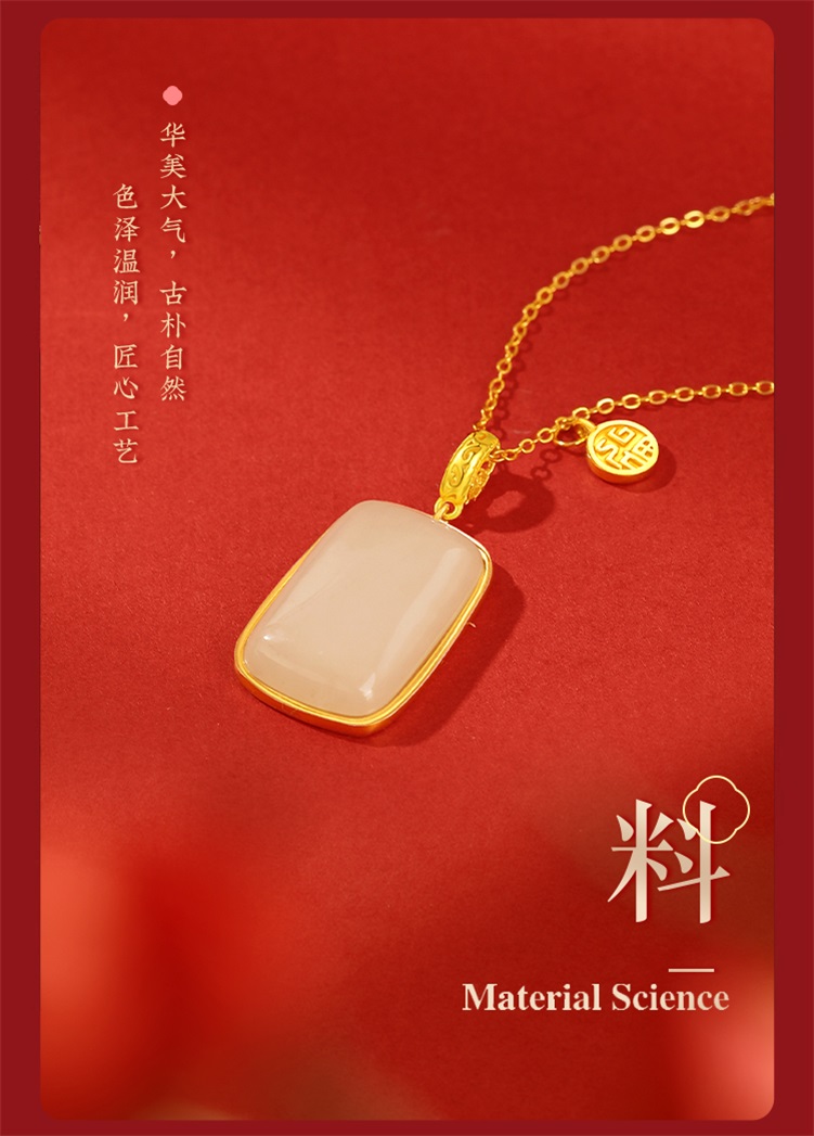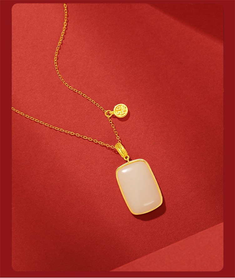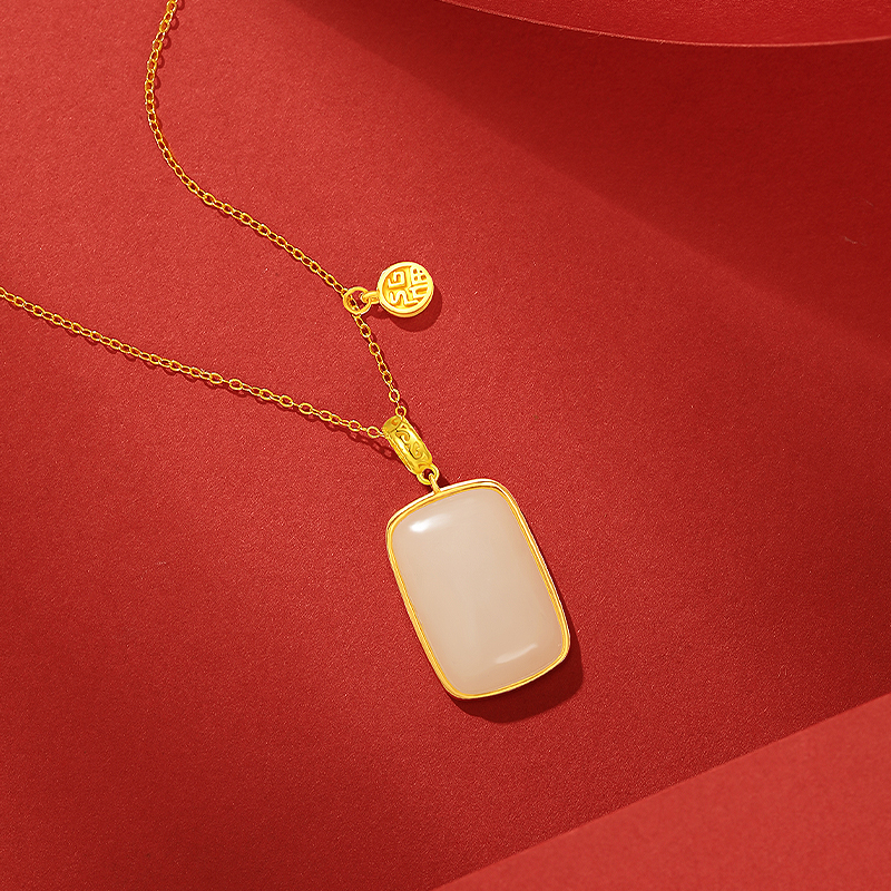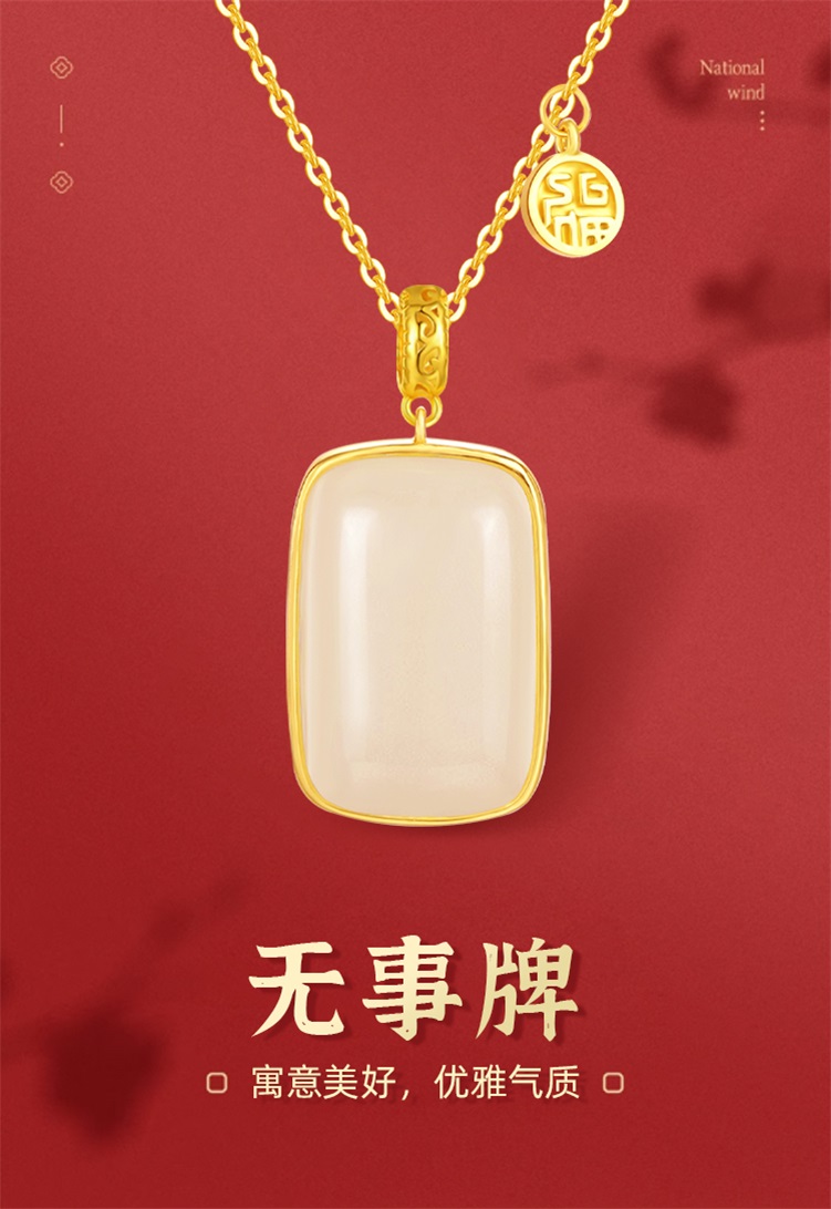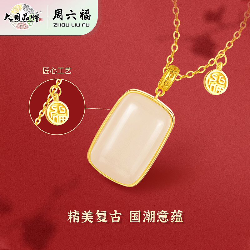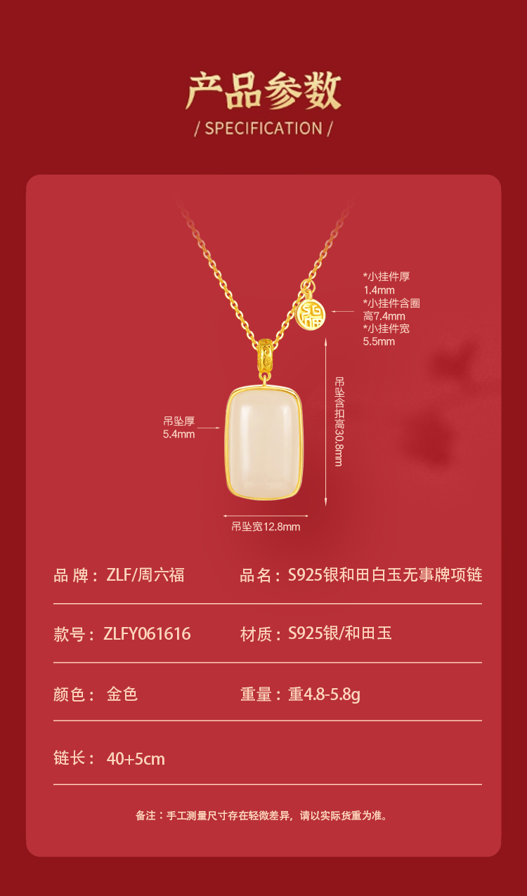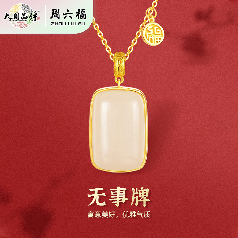 周六福白玉无事牌S925银和田白玉项链ZLFY061616