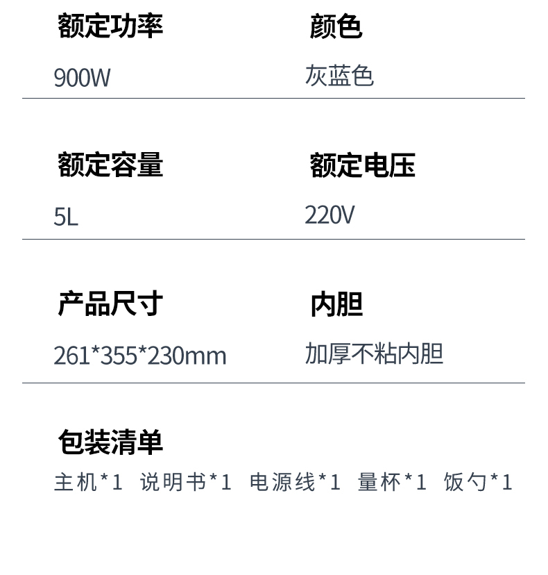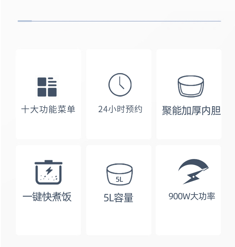格卡诺智能家用5升大容量不粘内胆电饭煲新款GKN-DFB-19(灰蓝色)