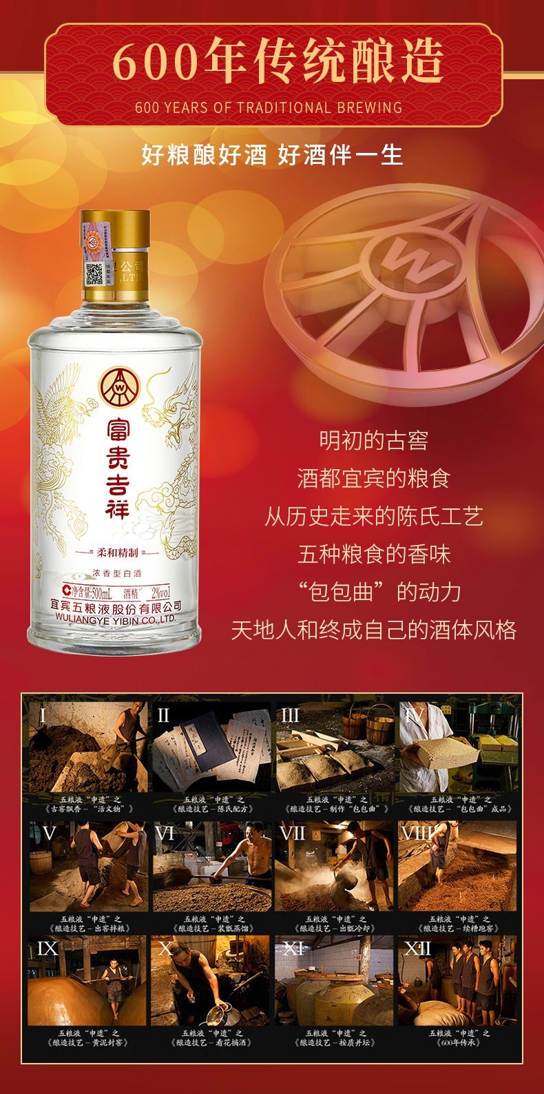 五粮液52度富贵吉祥柔和精制500ml * 6瓶