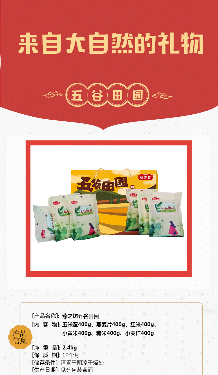 燕之坊 五谷田园礼盒 2.4kg营养谷物节日佳选企业团购 员工福利商务礼品【新疆/西藏/海南/内蒙/宁夏/青海/甘肃/港澳台不发货】