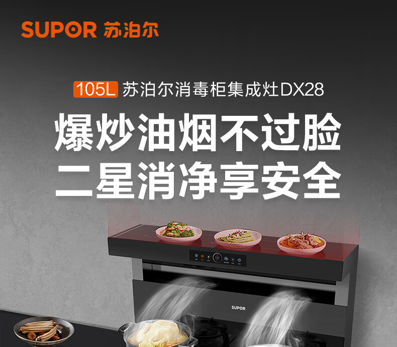 苏泊尔/SUPOR JJZT-SUP-C-DX28 集成灶 一体灶家用厨房一体吸烟机紫外消毒柜猛火灶集成烹饪 线下同款