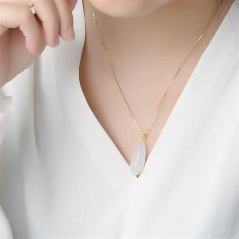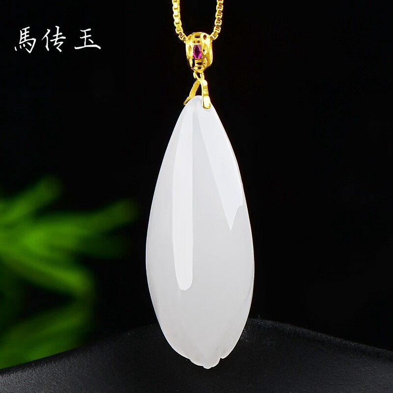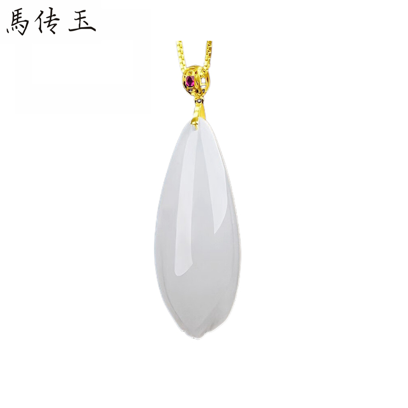 马传玉 18K金镶和田玉兰花吊坠送银镀金链 MCY017