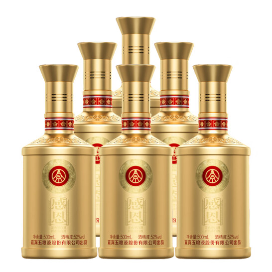 《好评100+》整箱6瓶装 五粮液金装感恩 五粮液股份公司出品 52度浓香型白酒 500ml * 6瓶 整箱购买附赠三只手提袋