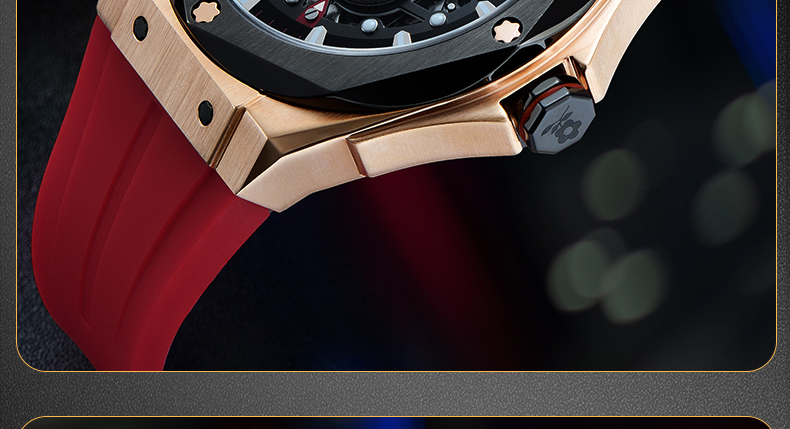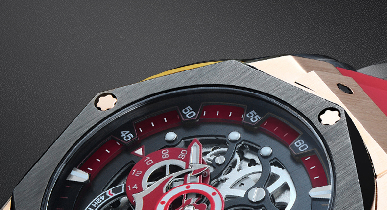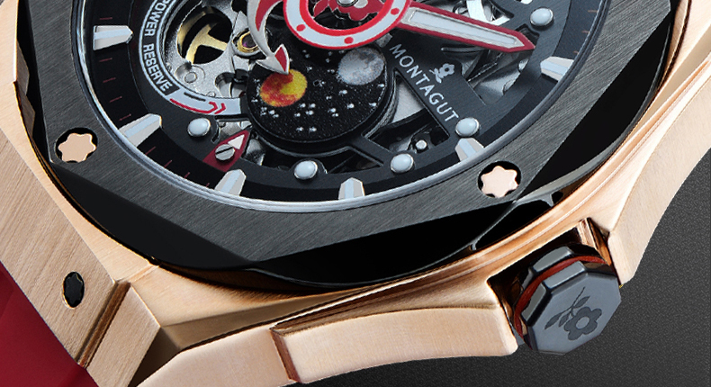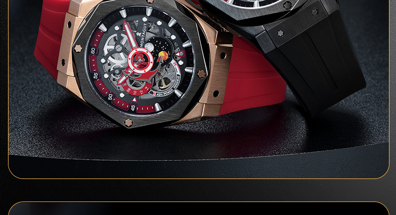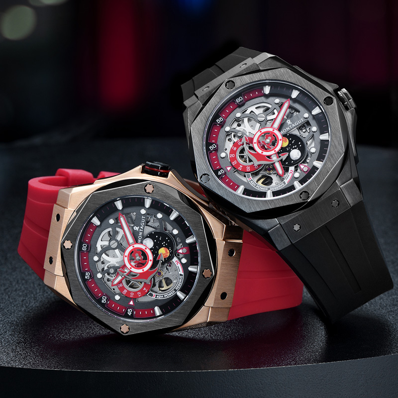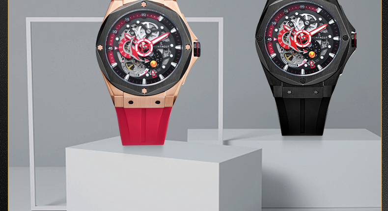 【梦特娇】MONTAGUT -包邮 开拓者酷炫运动全镂空背透全自动机械男表(黑色MWA221256/红色MWA221255)