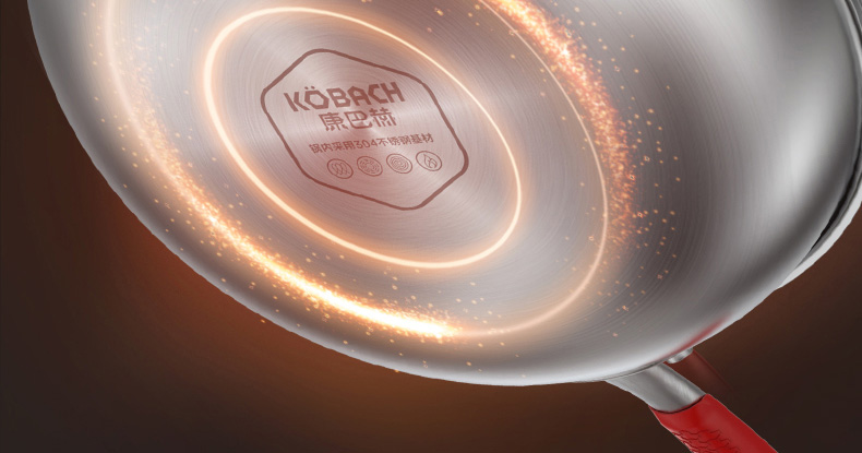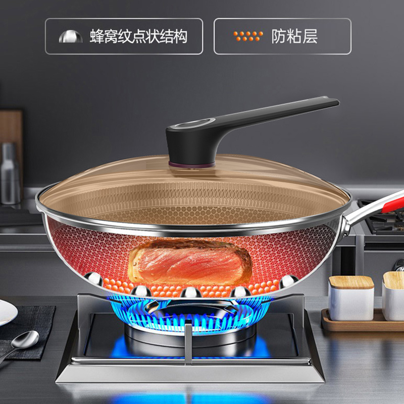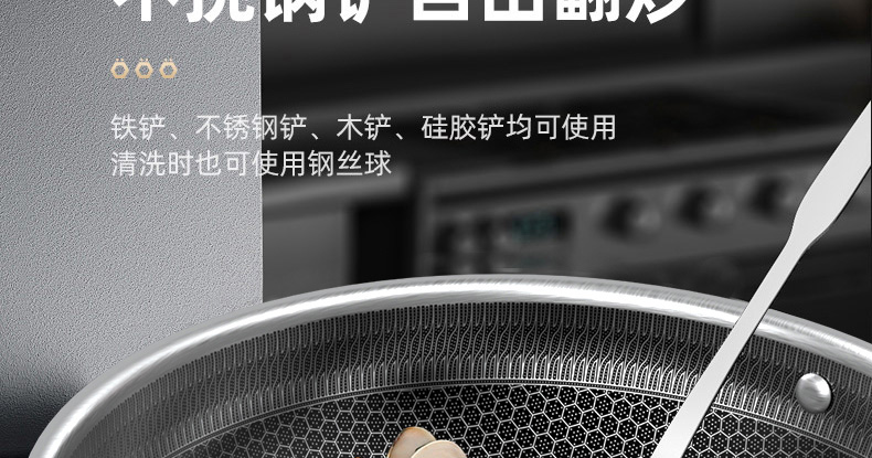 康巴赫悦享304蜂窝炒锅32cm单面屏 电磁炉燃气灶通用 LPB-C32Y 精美礼盒装 送铲子