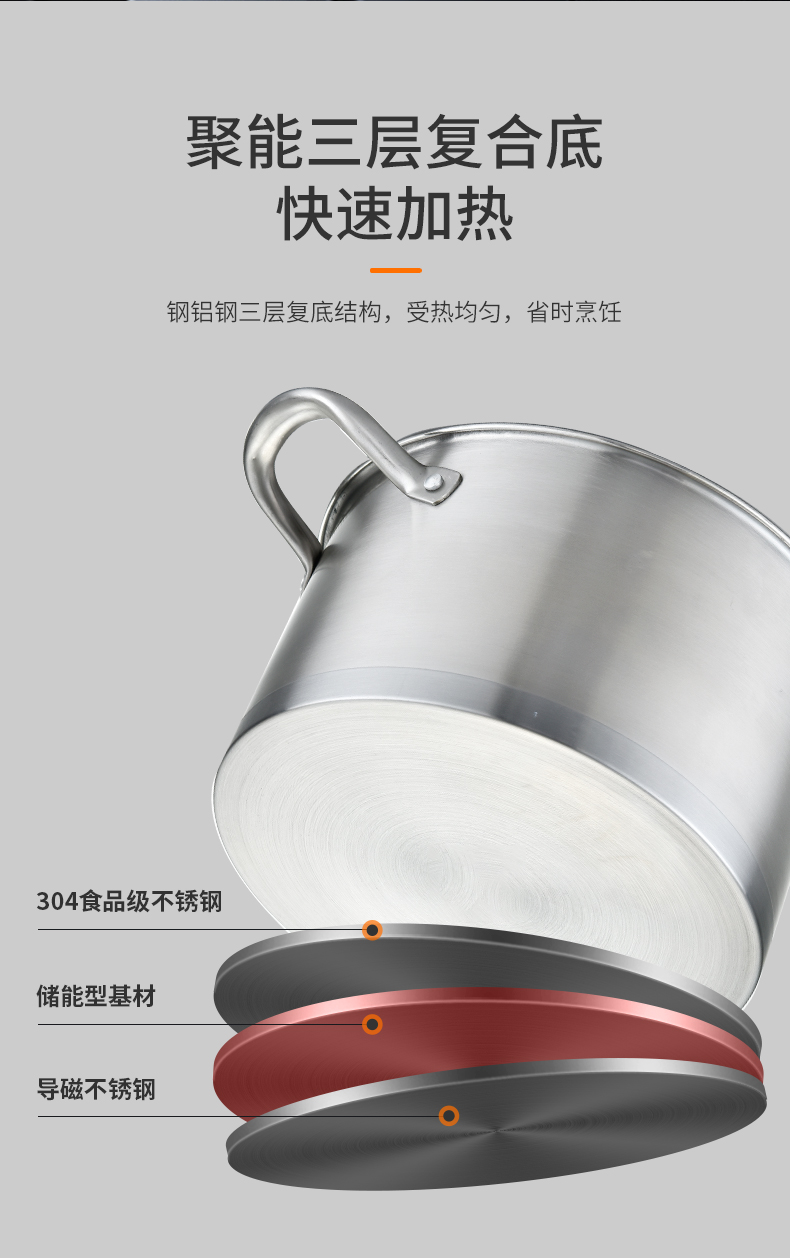 欧派皇冠系列304不锈钢汤锅22cm4.5L容量OP3G2212【新疆/西藏/港澳台不发货】