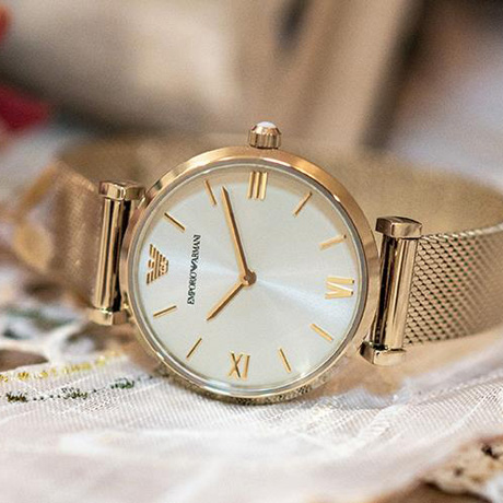 阿玛尼(Emporio Armani)手表 女士款钢带商务休闲简约气质琉璃金石英腕表礼物AR1957
