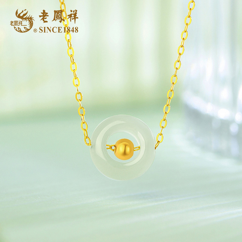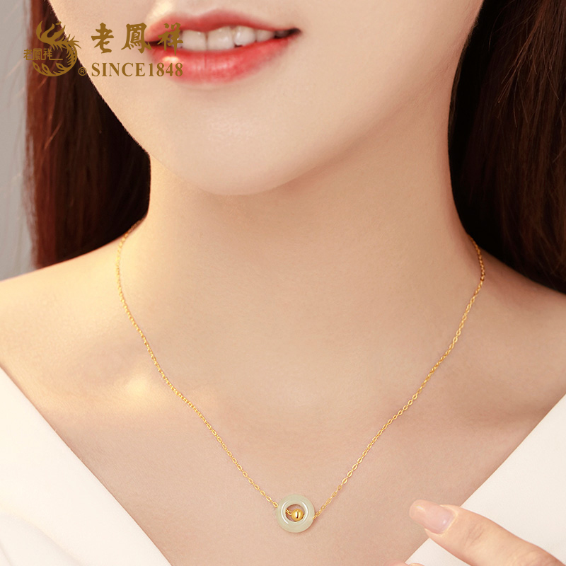老凤祥足金小金珠金玉满堂和田玉吊坠LFX000242