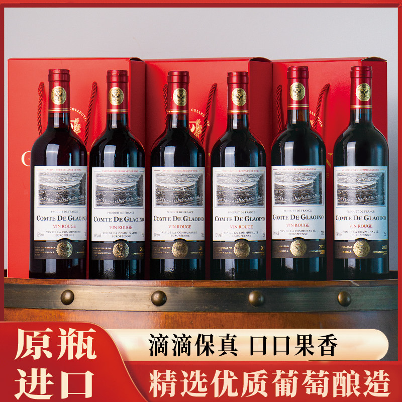 法国原瓶进口红酒伯爵干红礼盒装750ml*6瓶