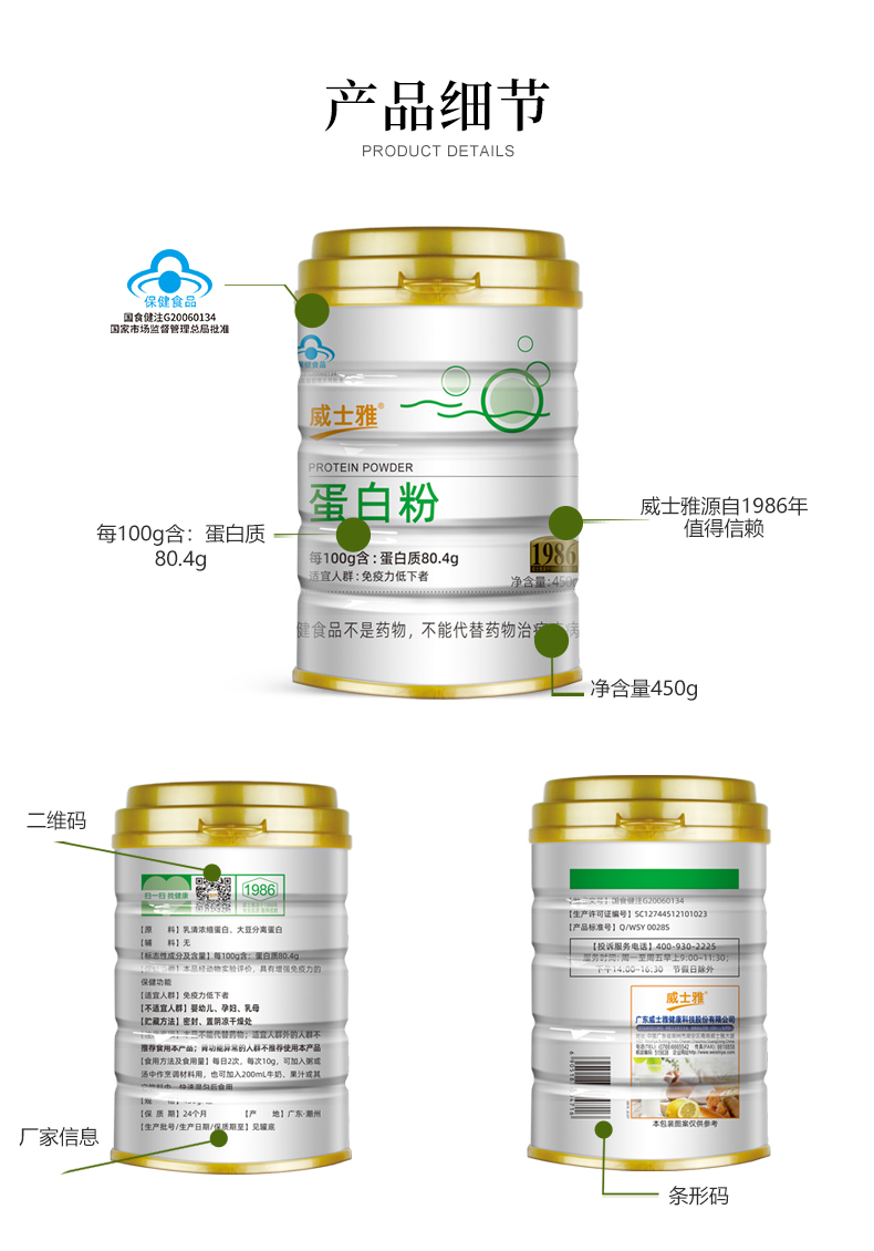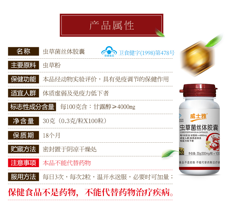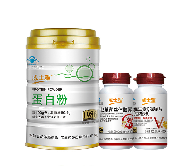 威士雅增强免疫力系列套餐(O810蛋白粉+O301虫草菌丝体胶囊+O351维生素C咀嚼片(香橙))