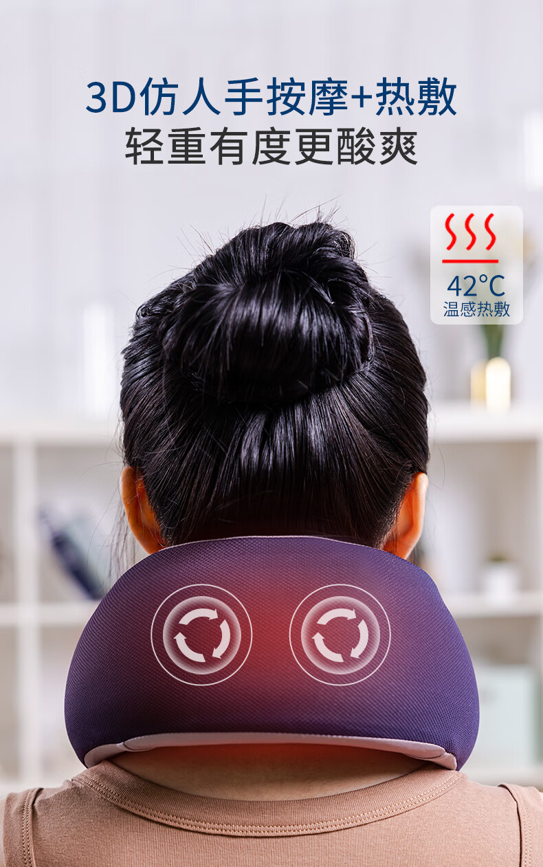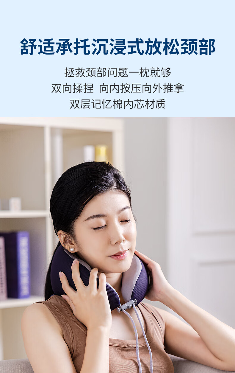 摩飞 颈椎按摩器颈部肩颈按摩器按摩仪 多功能按摩枕 环颈U型枕 热敷揉捏MR3125 深蓝色
