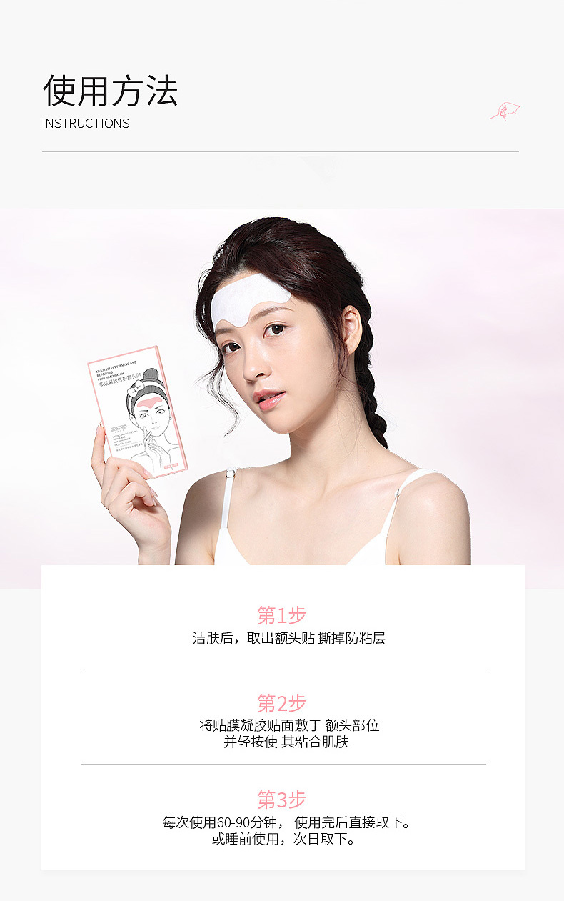 韩伦美羽额头贴淡化额头细纹补水修护紧致额头贴(盒装)5g*5贴*3盒