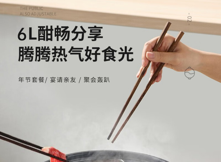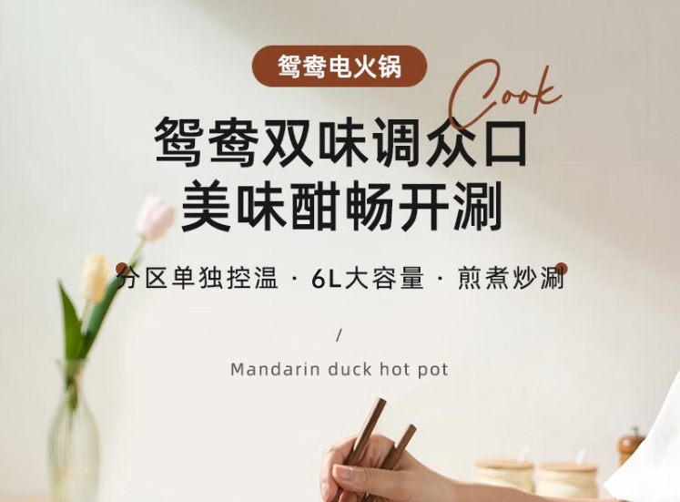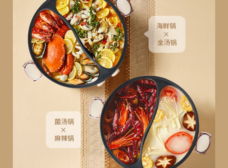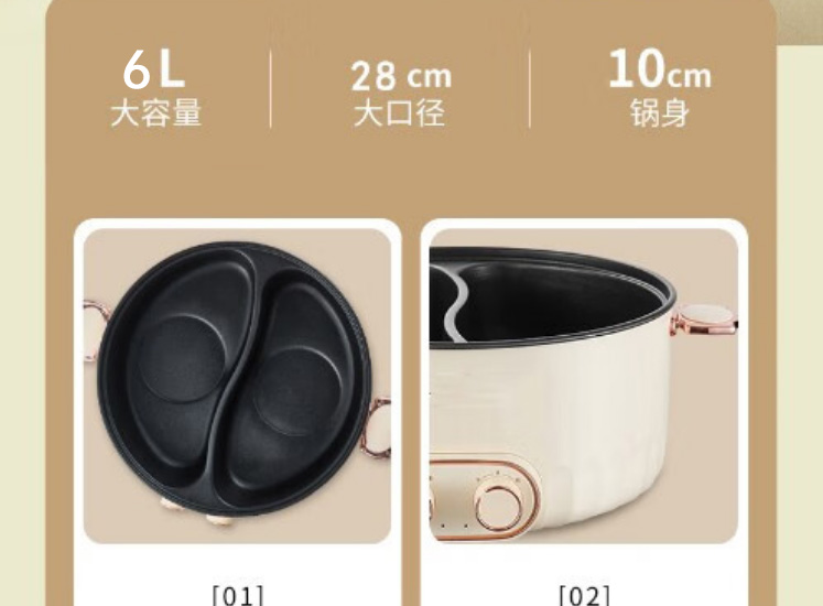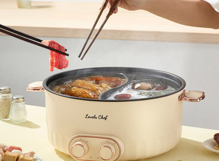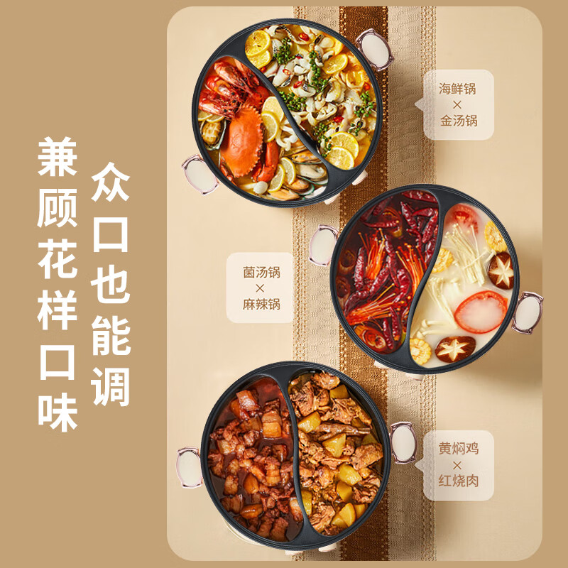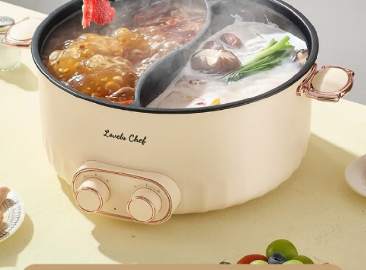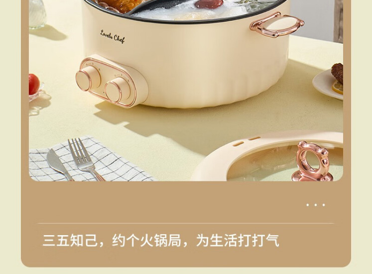 Lovely Chef萌厨 6L鸳鸯锅家用多功能电煮锅一体式独立双控温电热锅电炒锅炒菜不粘锅BH-32200C