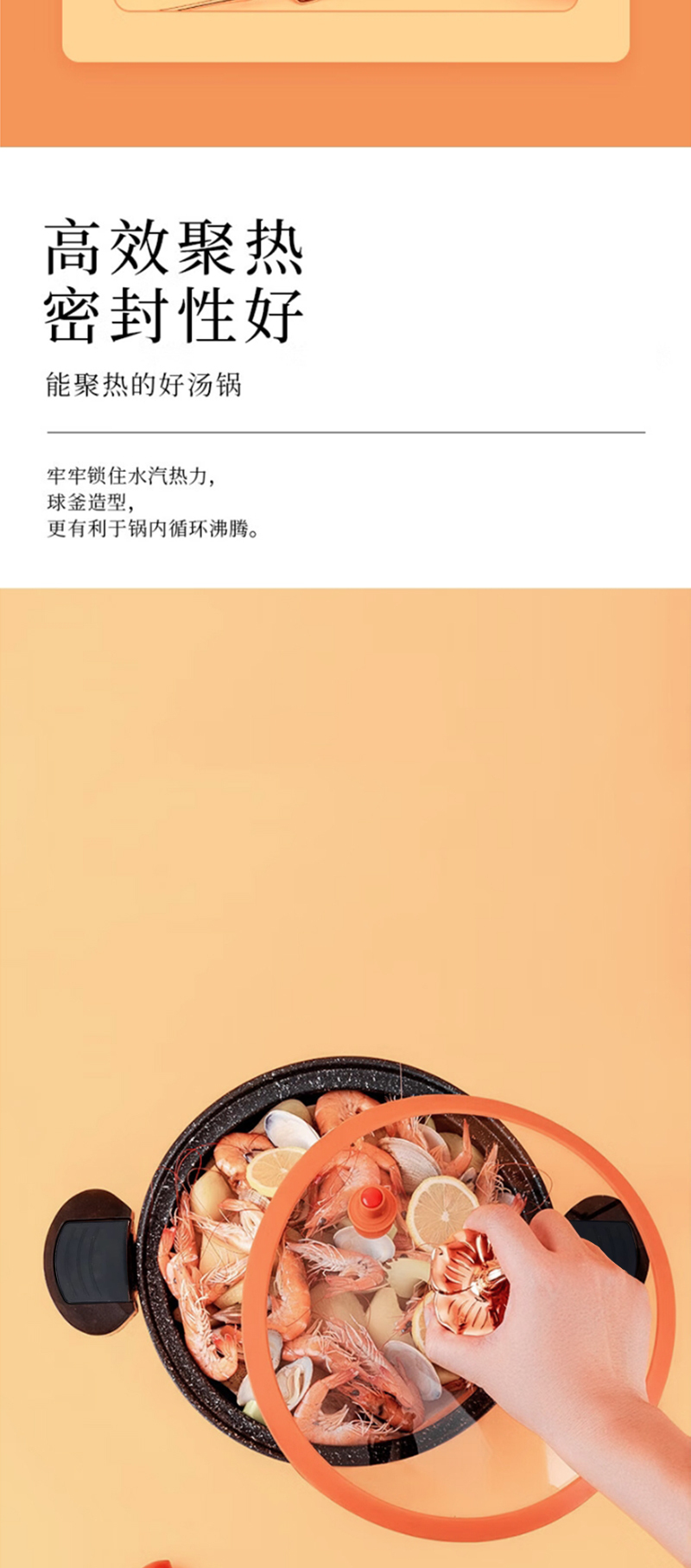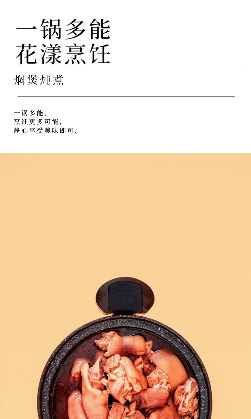 【一锅在手 美味全有】潇洒歌 电火锅 5升家用大容量多功能电炒锅电热锅电煮锅电炒锅不粘YR-G32 香槟色