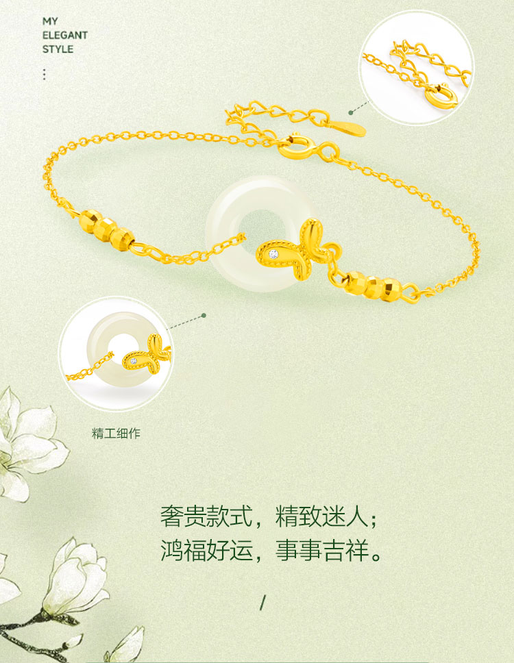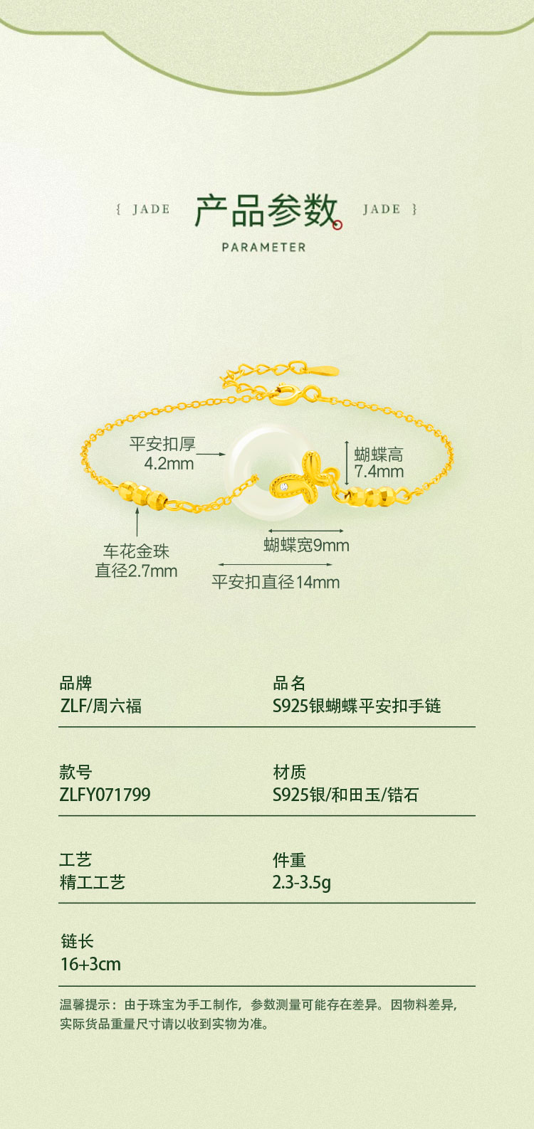 包邮-周六福S925银蝴蝶平安扣手链ZLFY071799 送女友送妈妈节日礼物