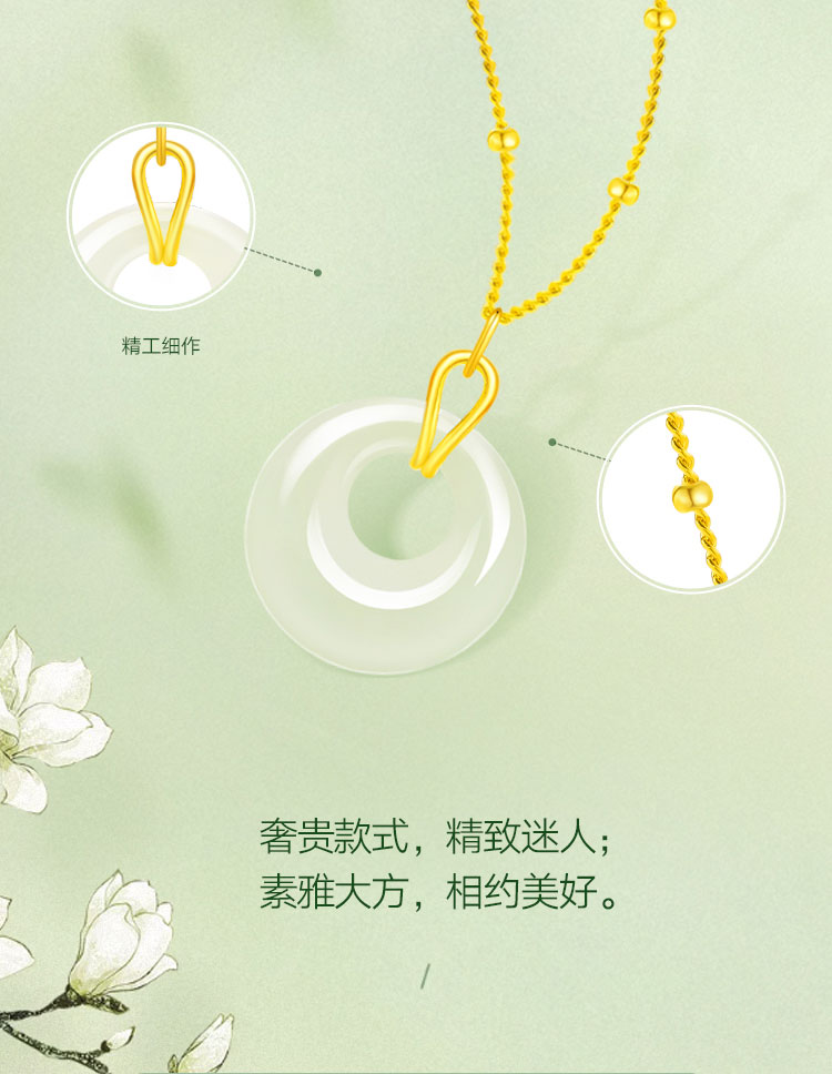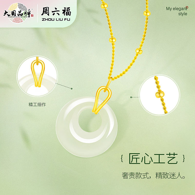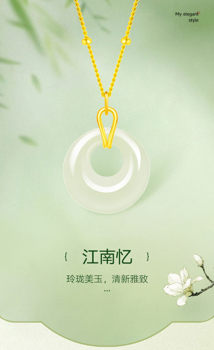 包邮-周六福S925银江南忆和田玉链坠ZLFY061791 送女友送妈妈节日礼物