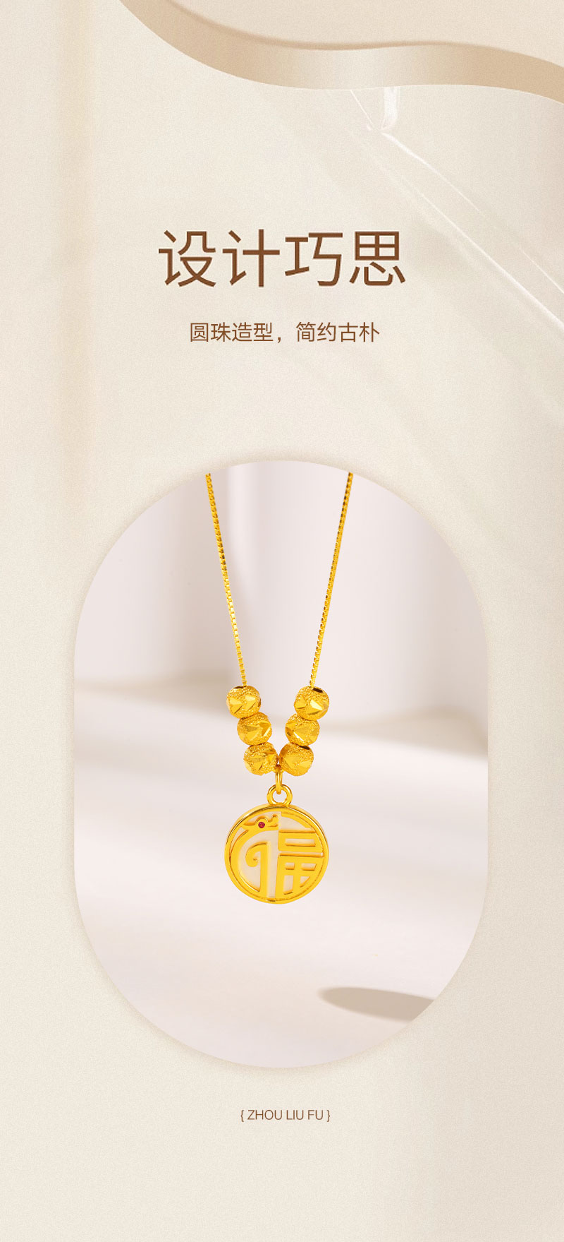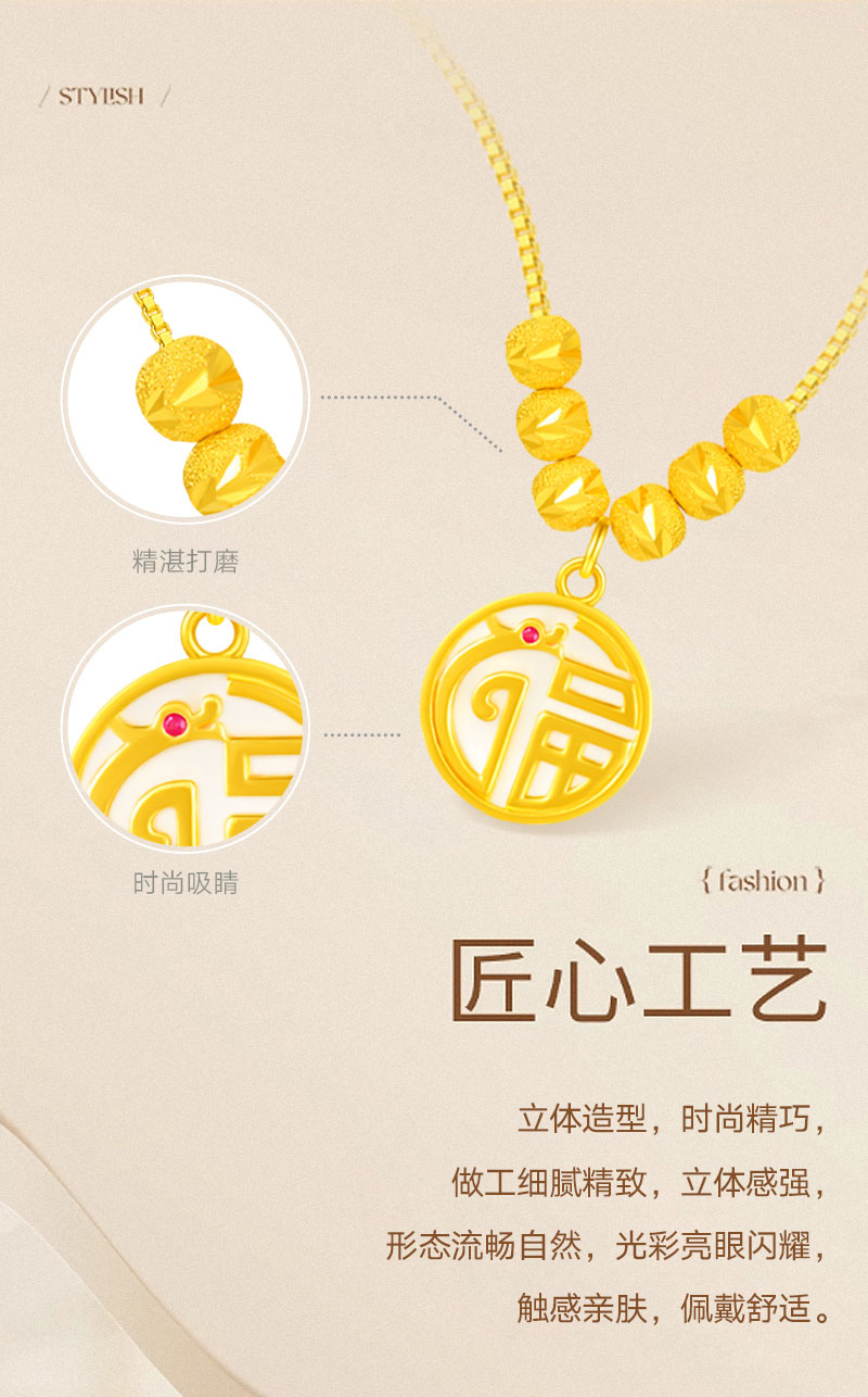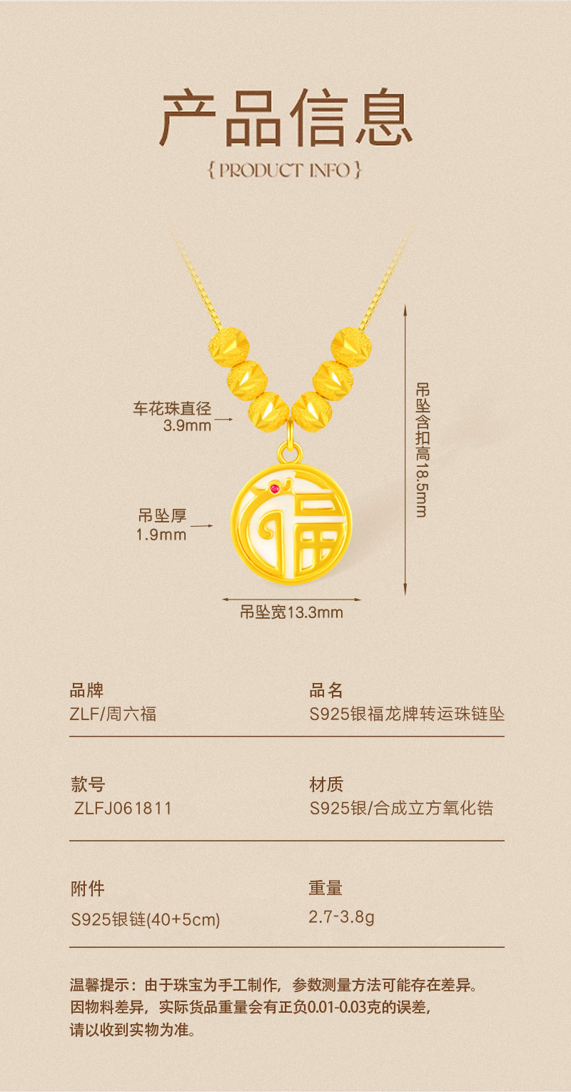 包邮-周六福S925银福龙牌转运珠项链ZLFJ061811 送女友送妈妈节日礼物
