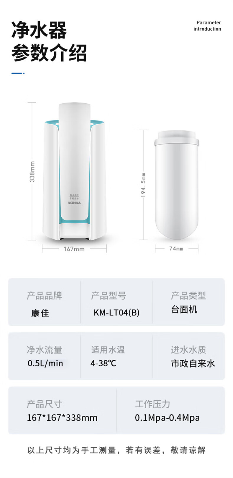 康佳台式便捷净水器 家用过滤器净水机 无废水超滤机净饮机厨房台上式净水器 KM-LT04(B)