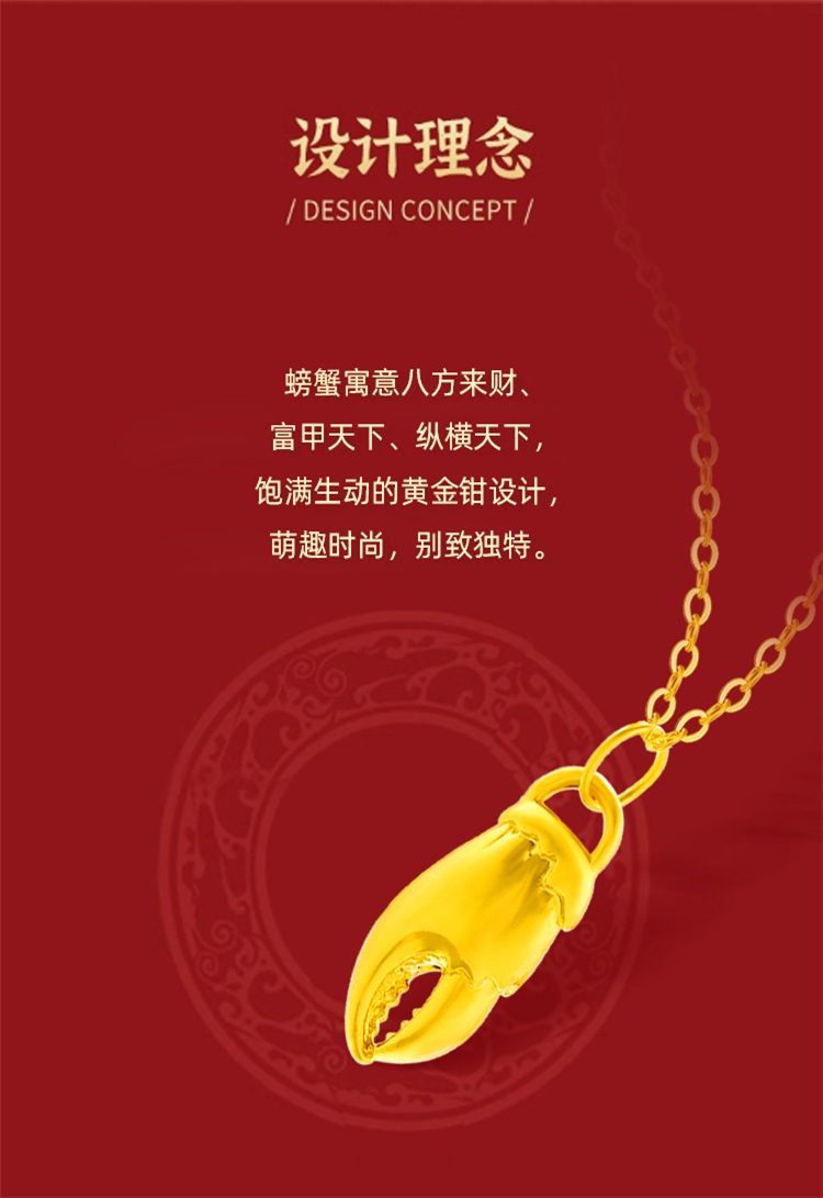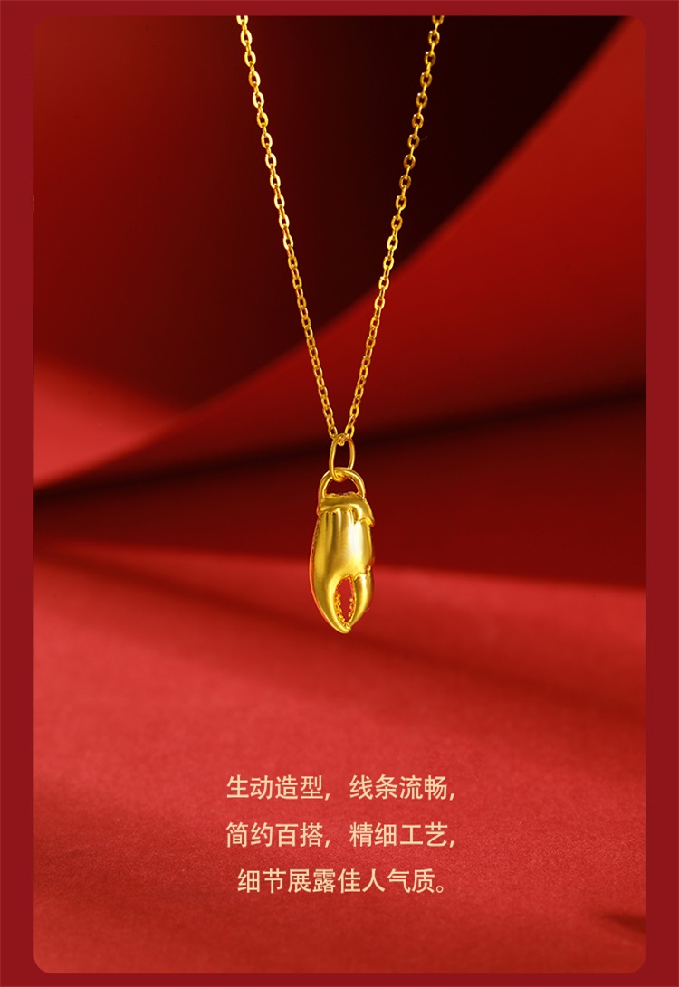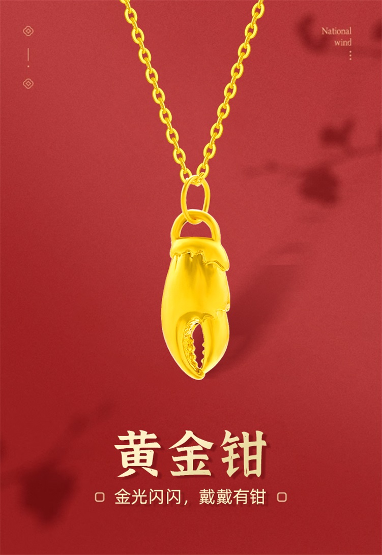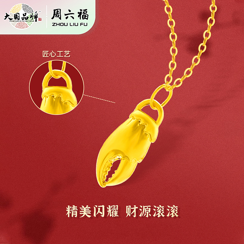 包邮-周六福足金黄金钳吊坠ZLFA041814 送女友送妈妈节日礼物
