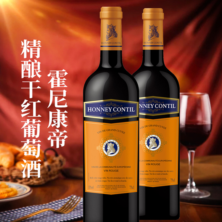 霍尼康帝 精酿干红葡萄酒 红酒 13%vol 750ml/瓶*6支装 礼盒装