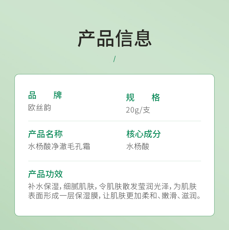 欧丝韵水杨酸净澈毛孔霜改善角质收敛毛孔补水舒缓痘肌20g*5支
