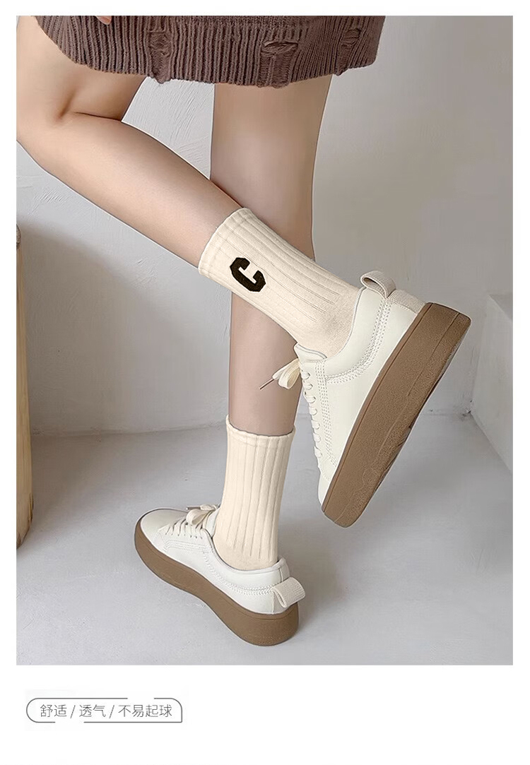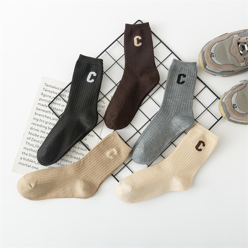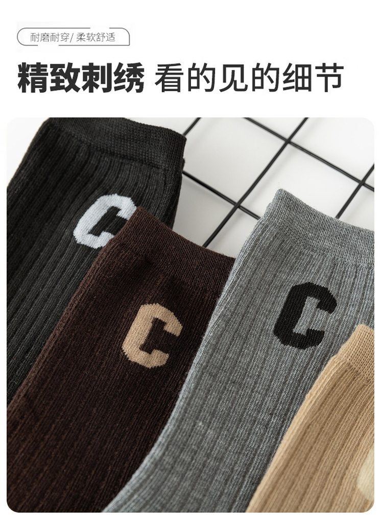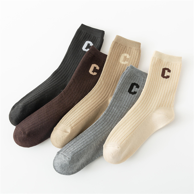 Cmierf Kuect(中国CK)女款黑色棕色粉色灰色绿色字母条纹棉袜5双/袋CK-LWC-01