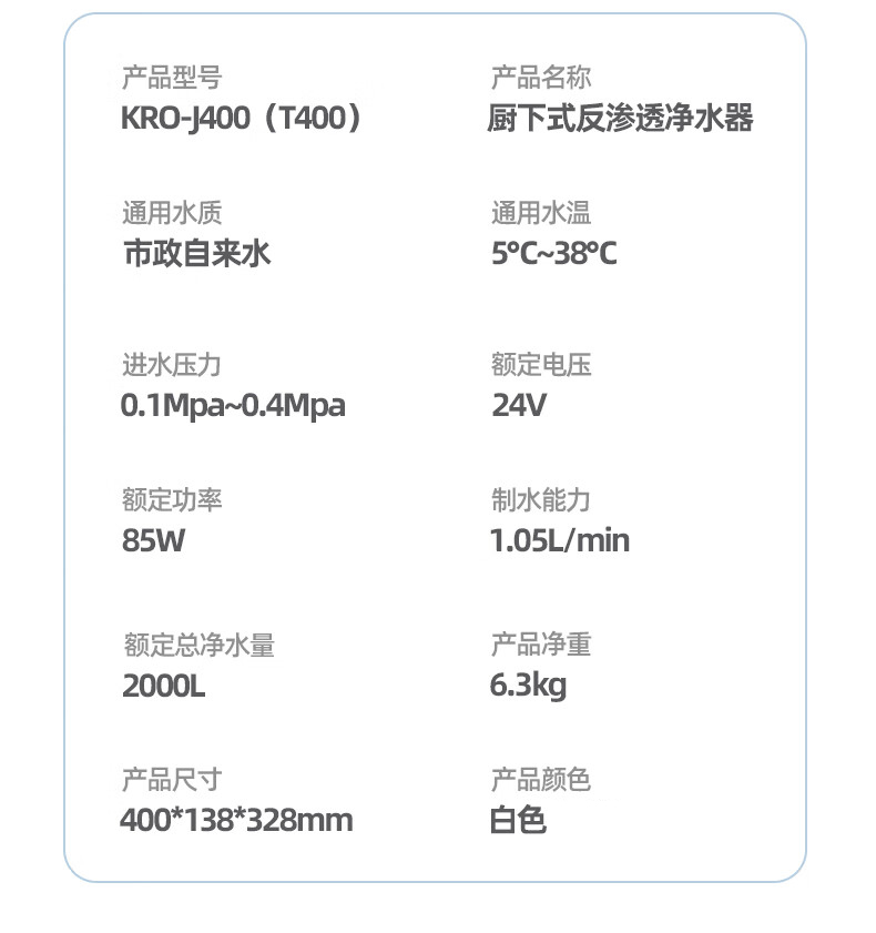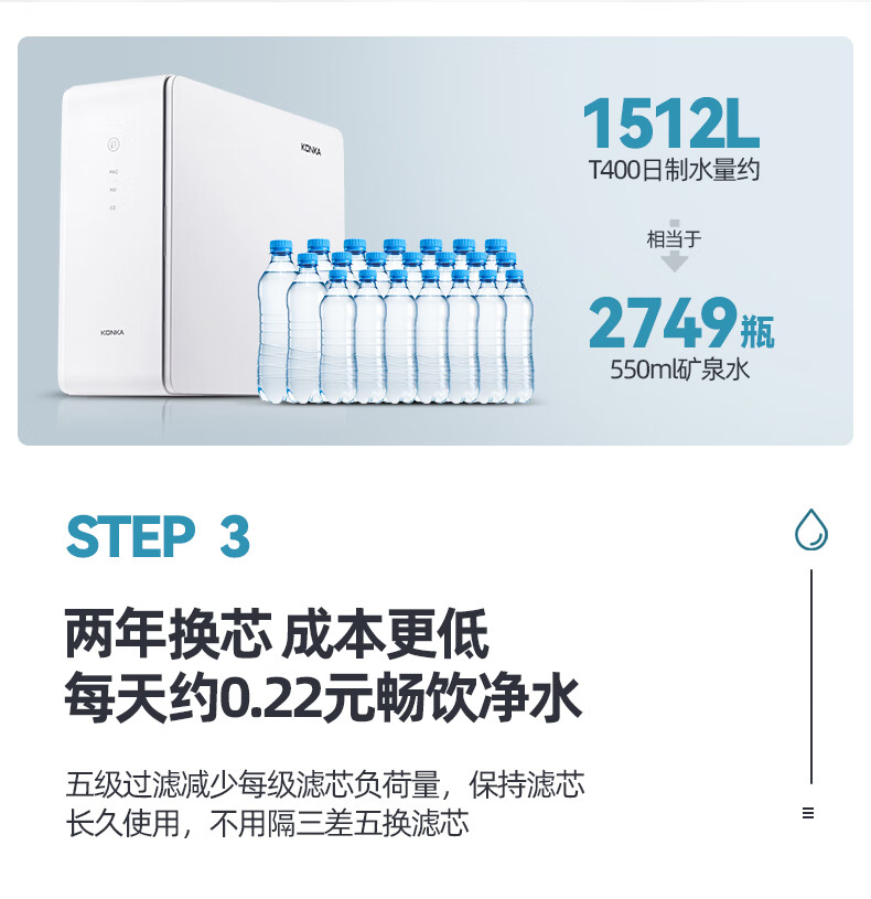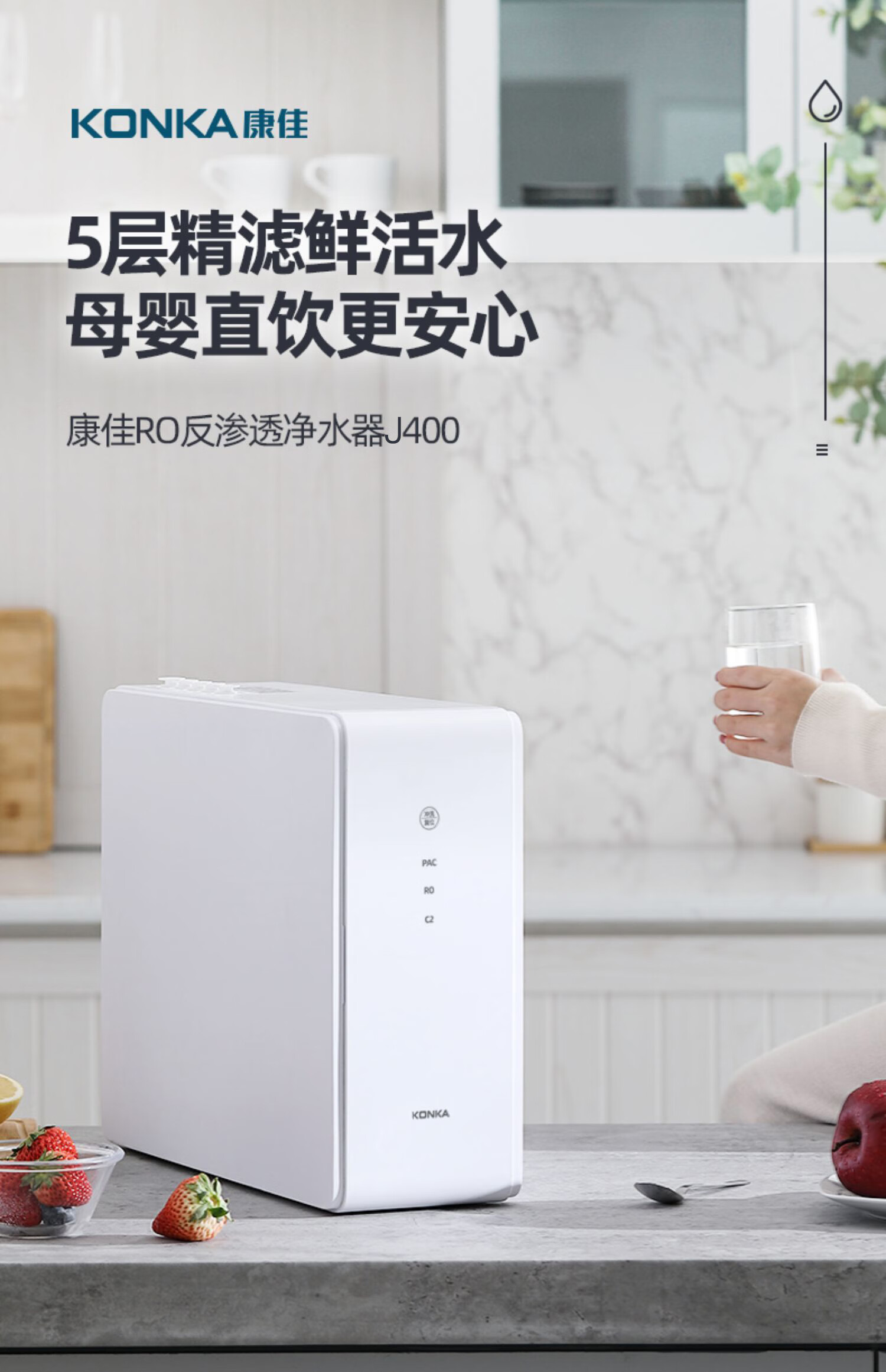 康佳KONKA净水器家用厨下式净水机 升级无罐款 新鲜活水无桶即滤 台下直饮纯水机 RO反渗透三芯5级过滤400G大通量 KRO-J400 京东快递发货