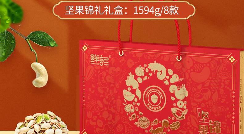 鲜记坚果锦礼8罐1.594kg【土耳其杏干218g+沙特椰枣208g+开心果188g+开口松子218g+碧根果168g+混合果仁198g+夏威夷果198g+紫衣腰果198g】新疆/西藏不发货