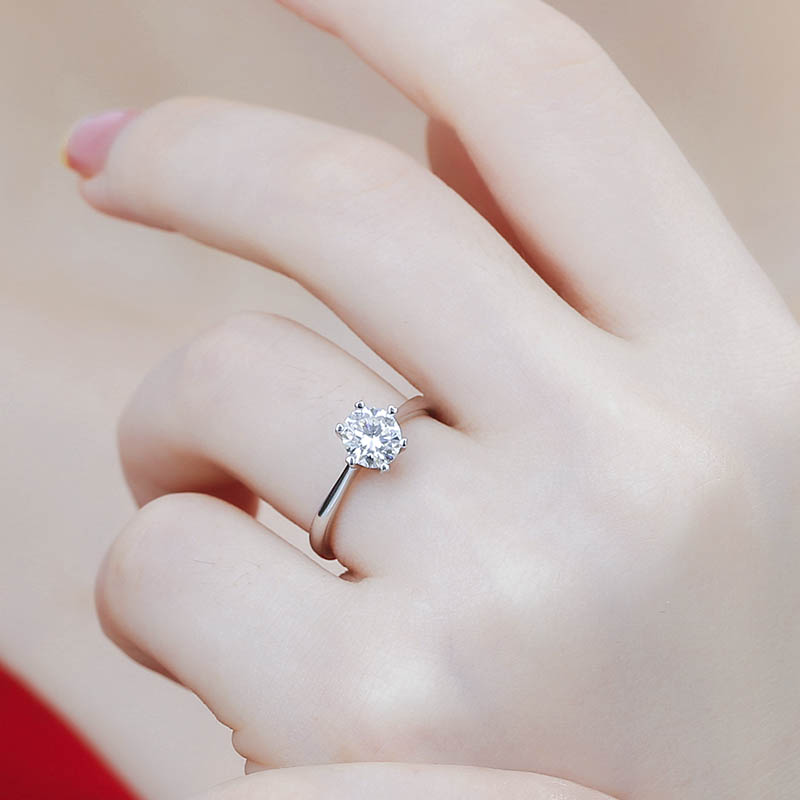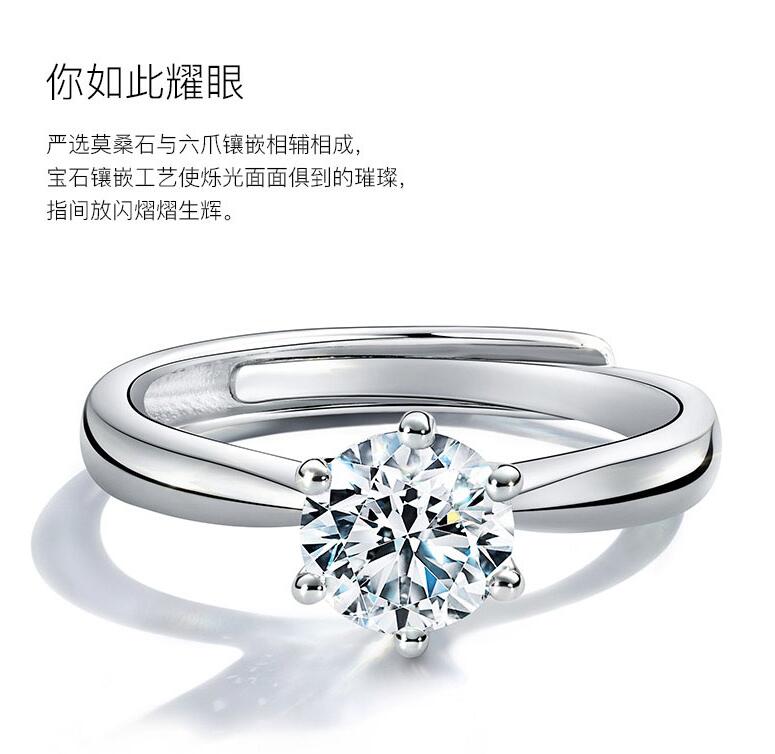 SHIGFUKU 香港周六福莫桑钻戒指6.5mm 1克拉-六爪 新疆、西藏、青海不发货