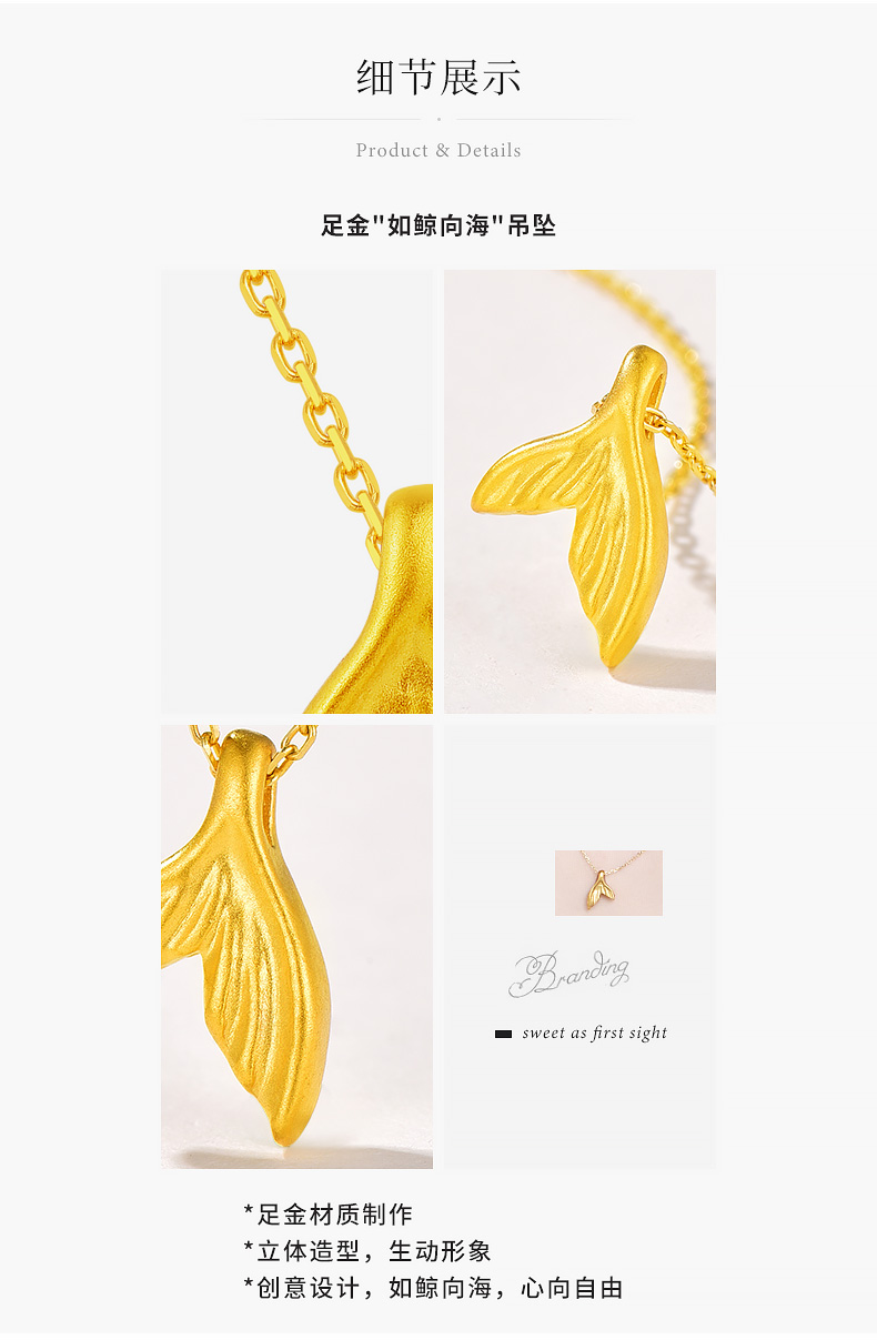 老凤祥足金鱼尾吊坠项链LFXJW220864-2