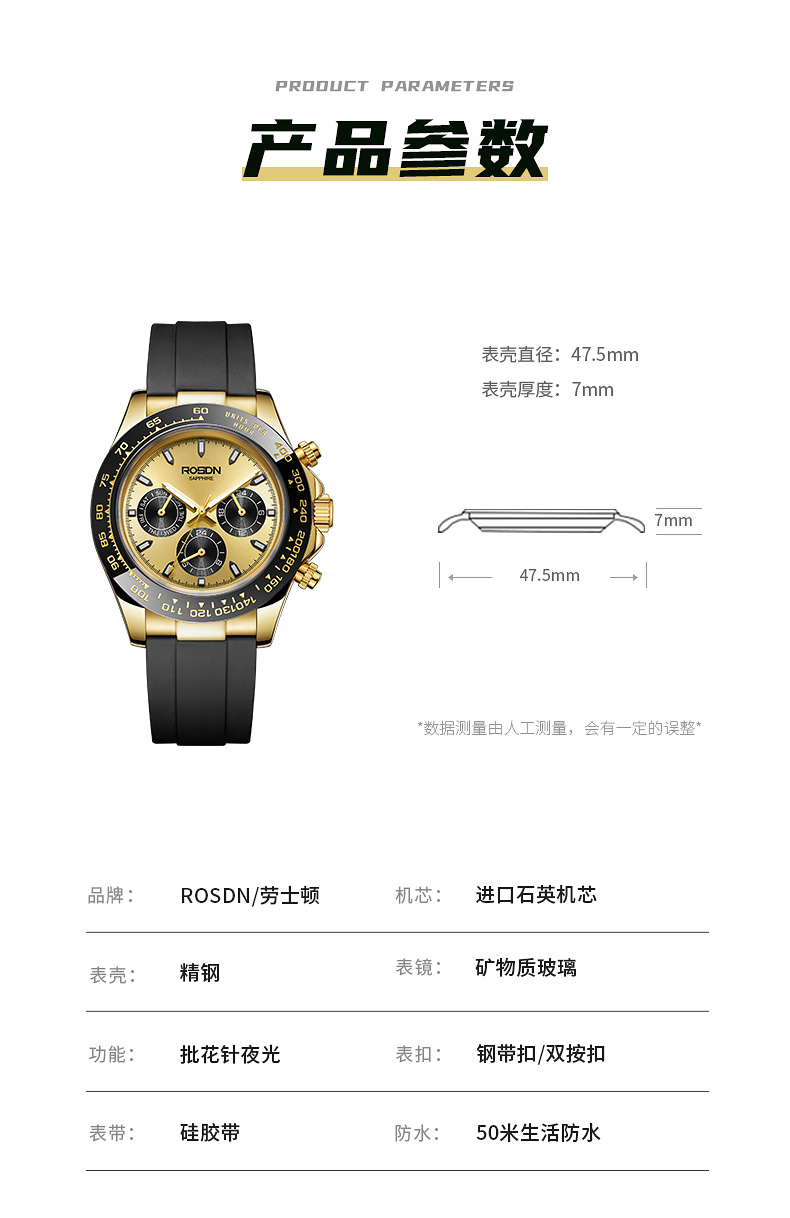 劳士顿新款男士手表时尚潮流手表男多功能防水手表 黄蜂黄-硅胶带 3720G 张一山代言【新疆,西藏不发货】