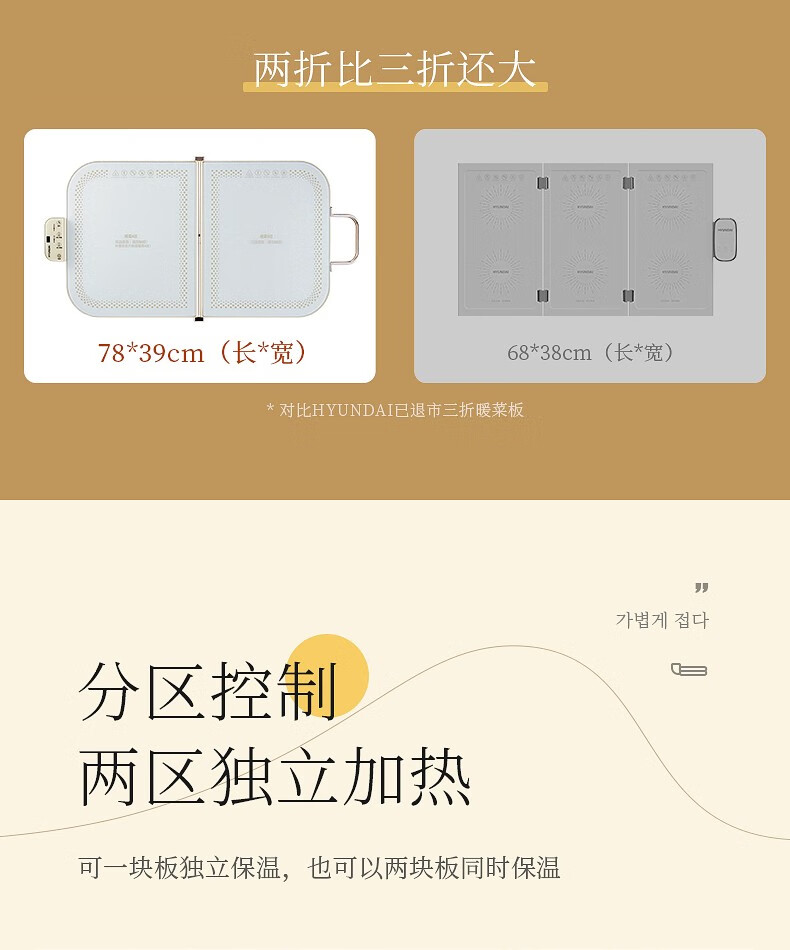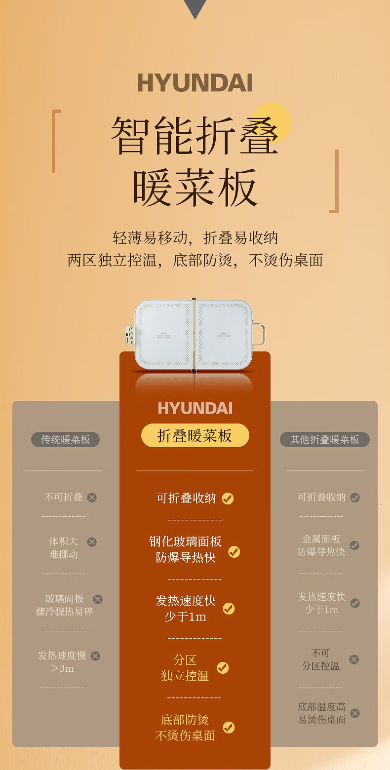 HYUNDAI可折叠分区控温暖菜板DR-NCB-07-1【新疆/西藏/港澳台不发货】