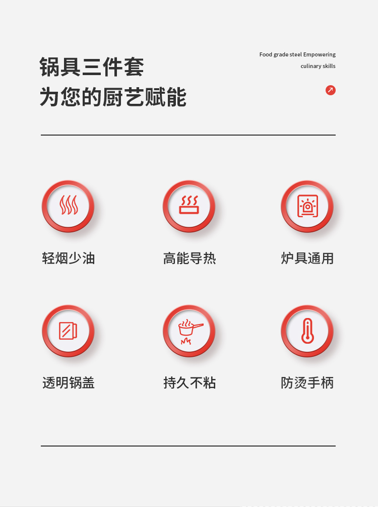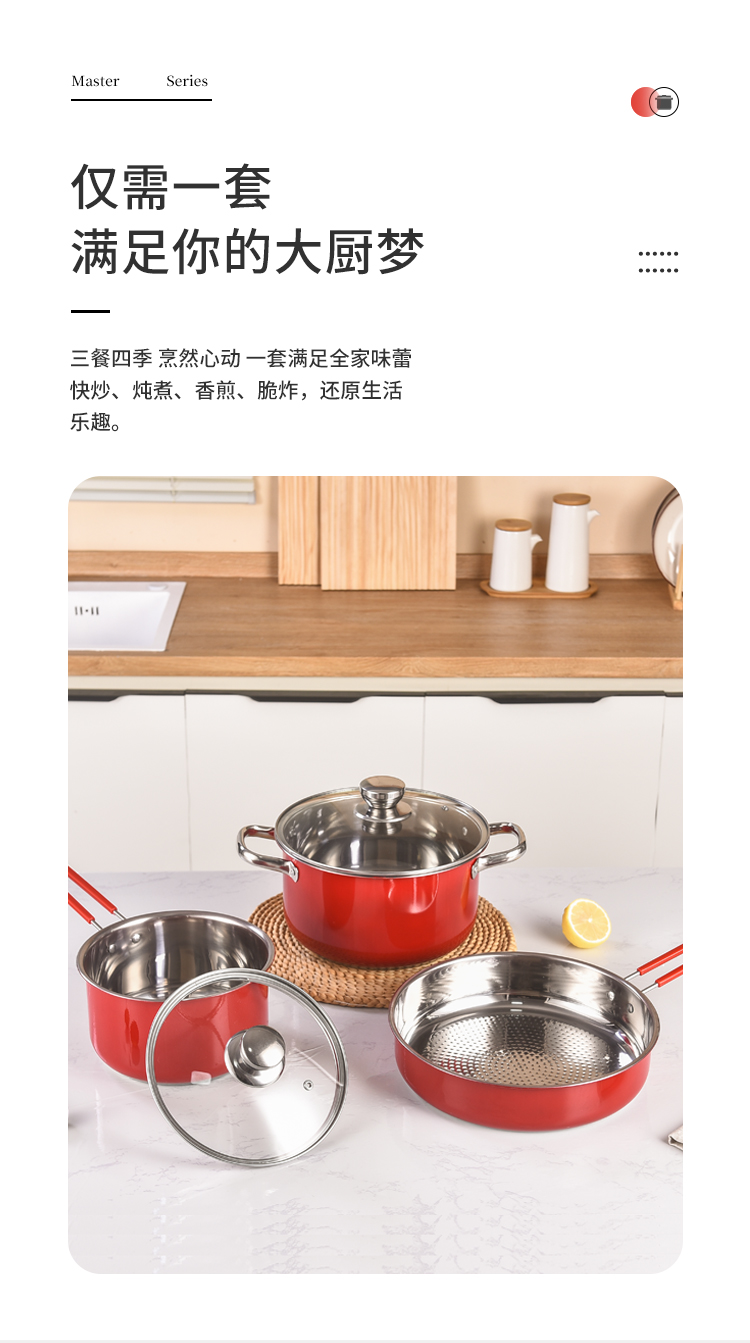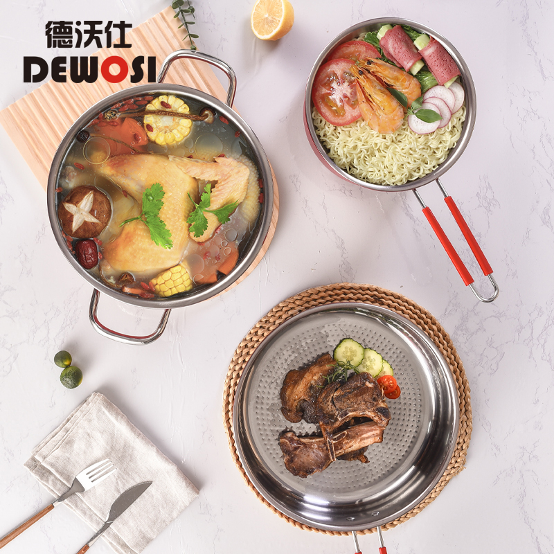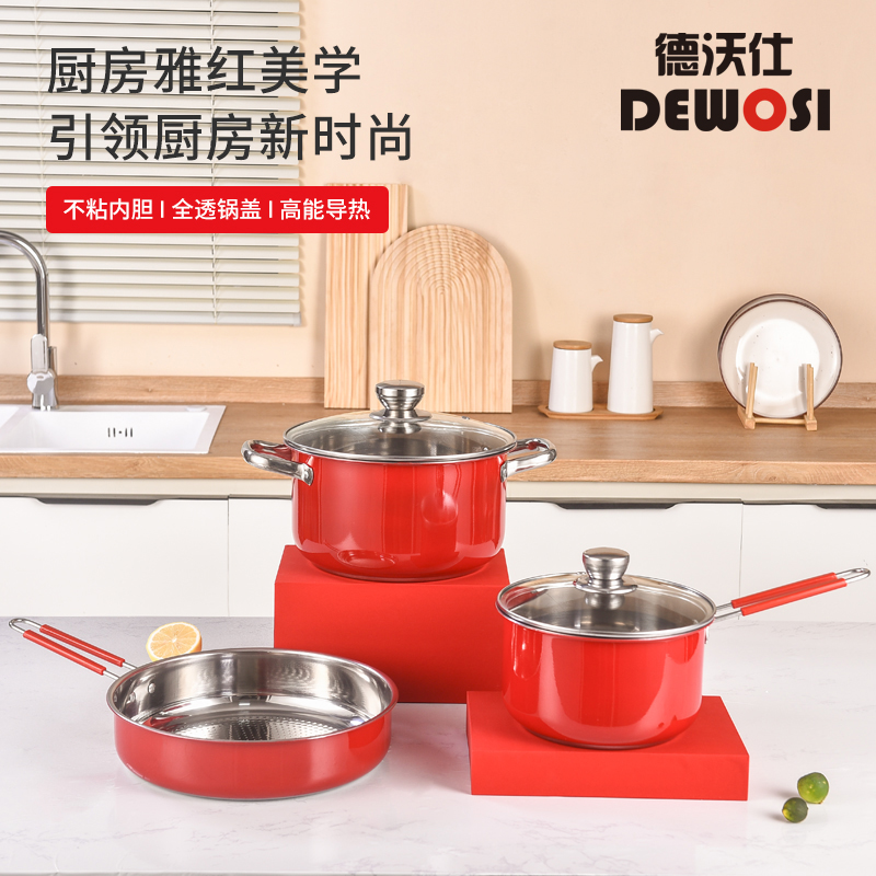德沃仕 家用厨房组合不粘锅具三件套 不锈钢内胆 高能导热 炉具通用 防烫手柄 型号:DWS0073
